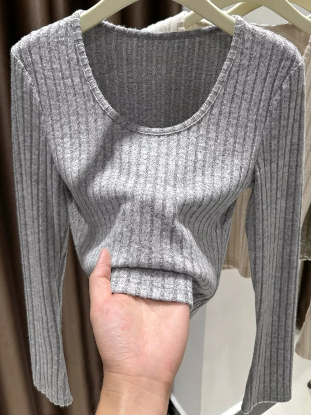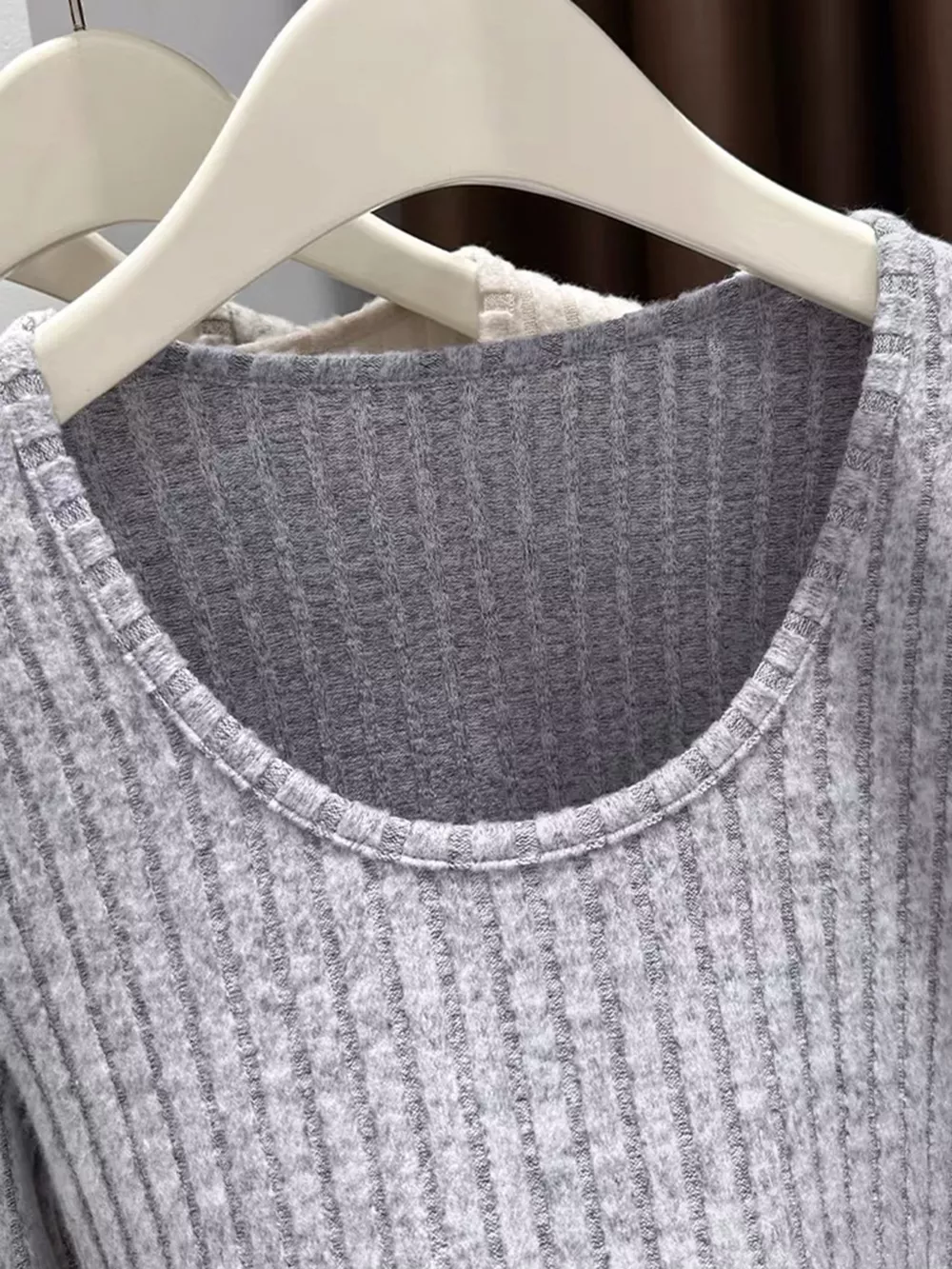 Ribbed Knit Slim Fit Long Sleeve T-Shirt