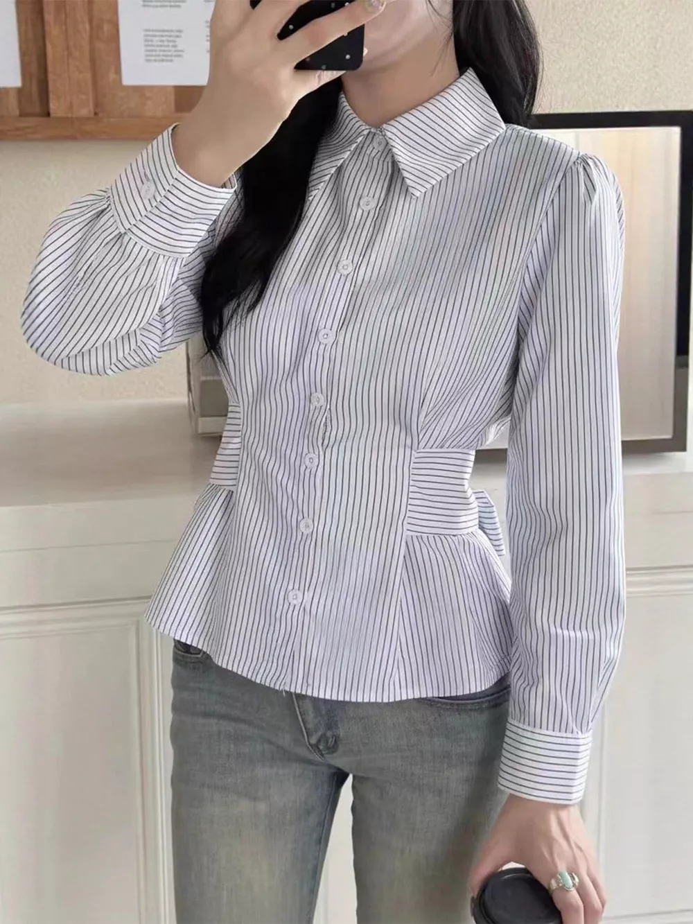 Striped Peplum Button Up Shirt