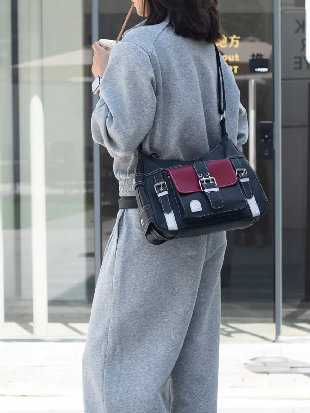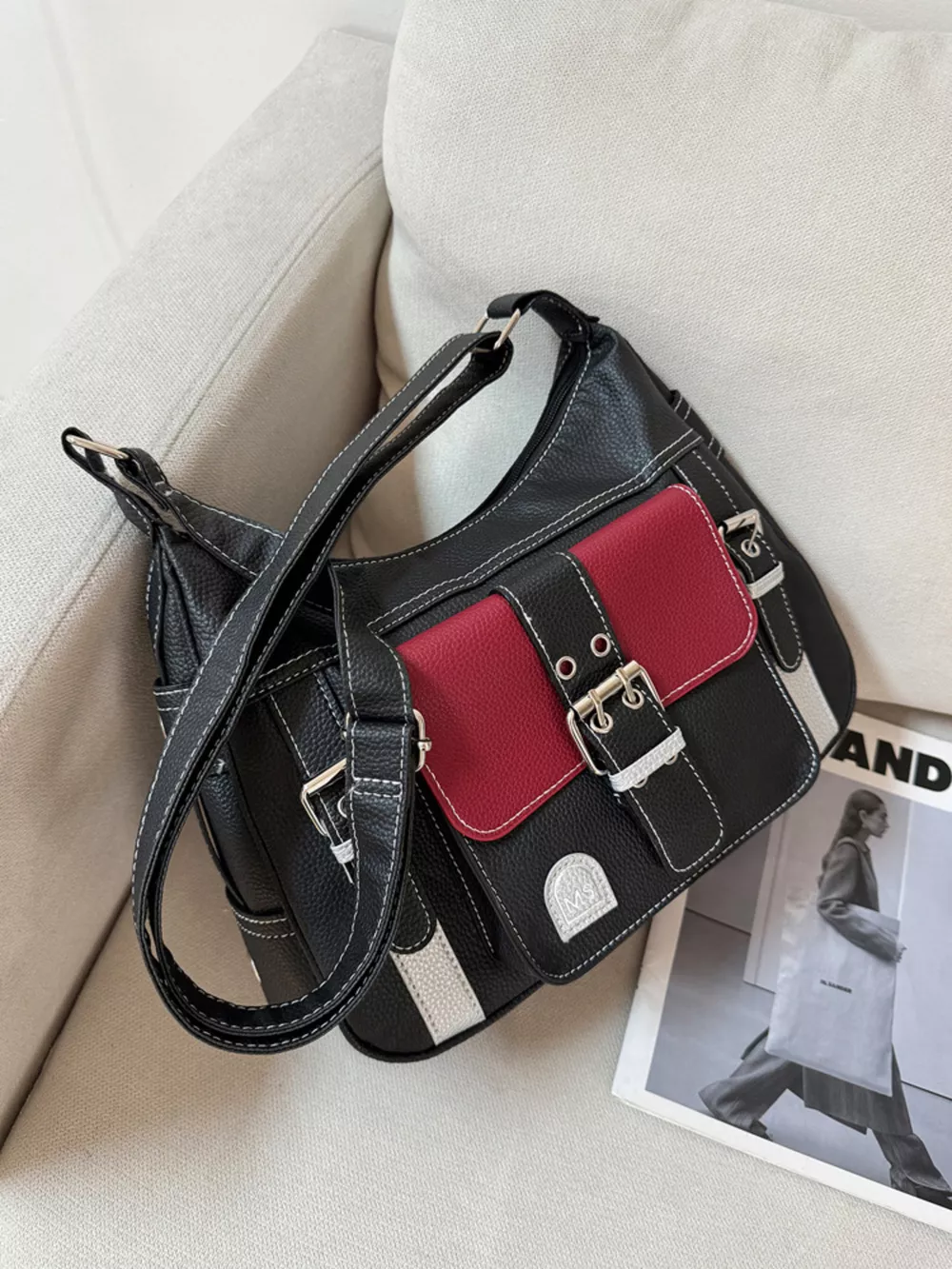 Buckle Decor Flap Crossbody Bag