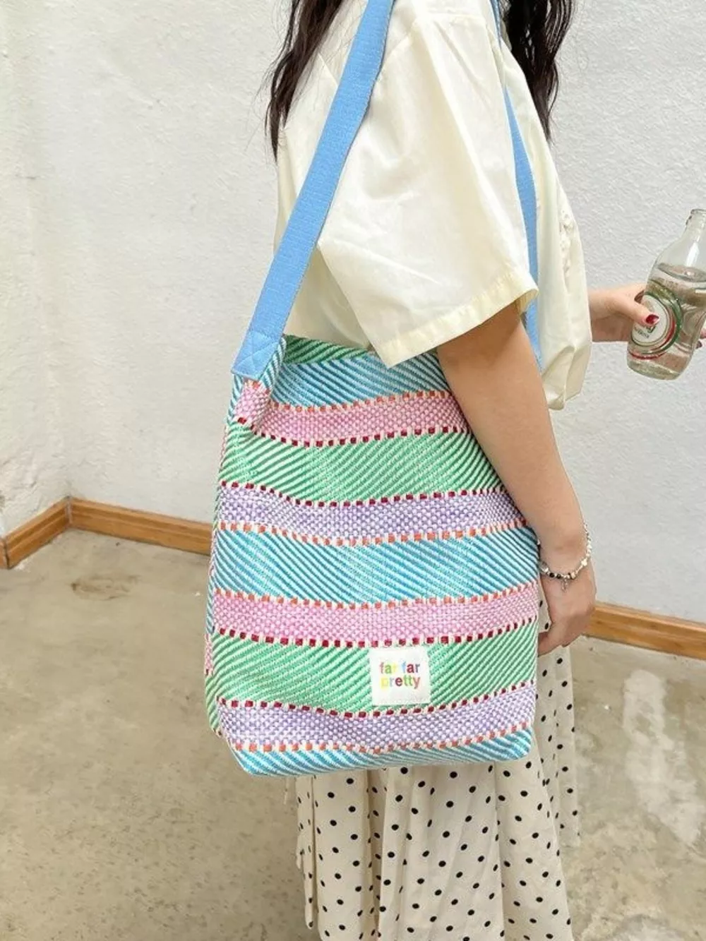 Striped Woven Shoulder Bag with Adjustable Strap