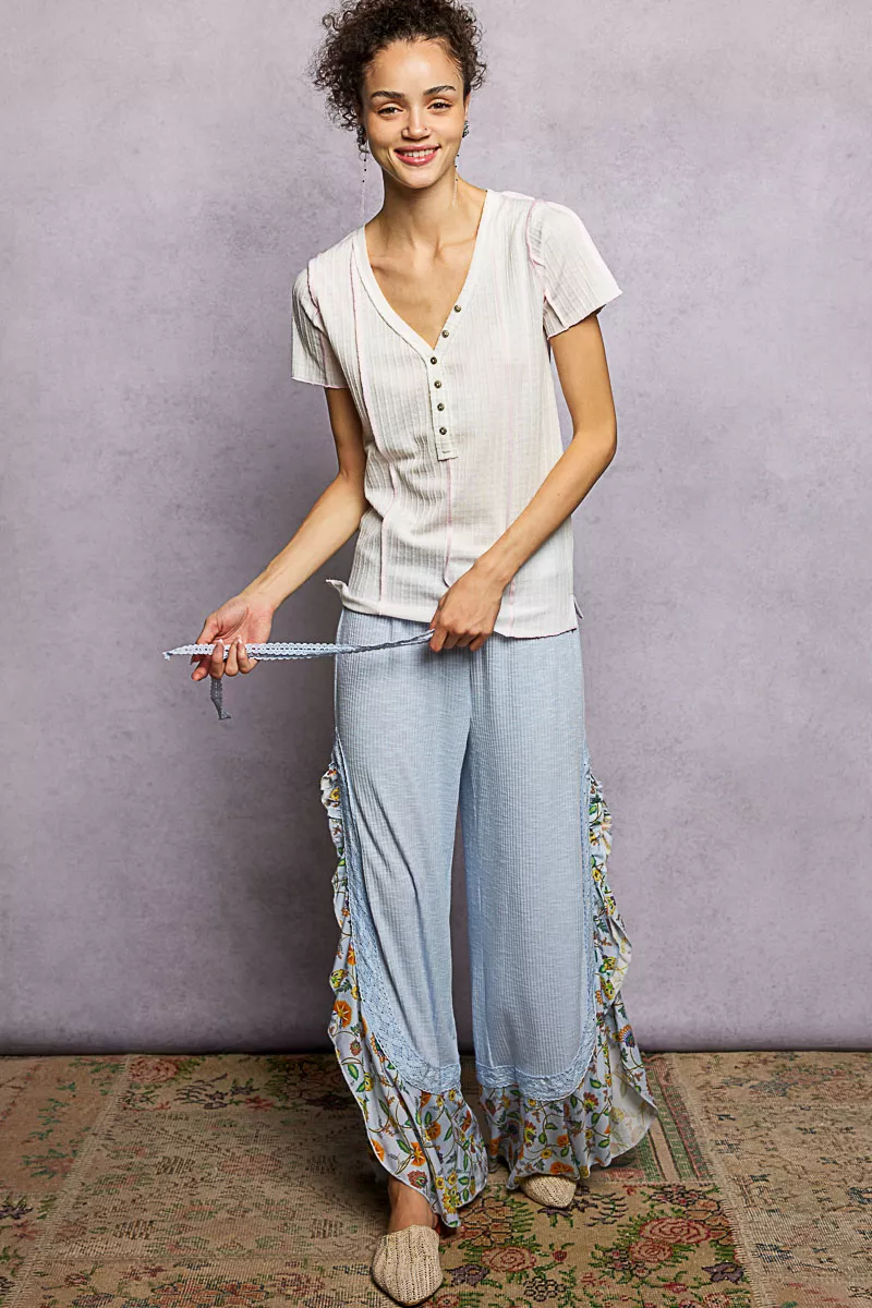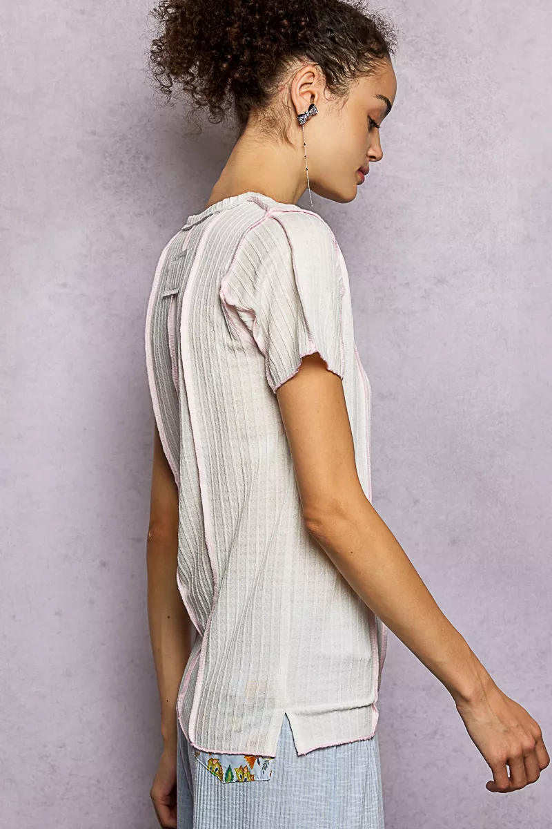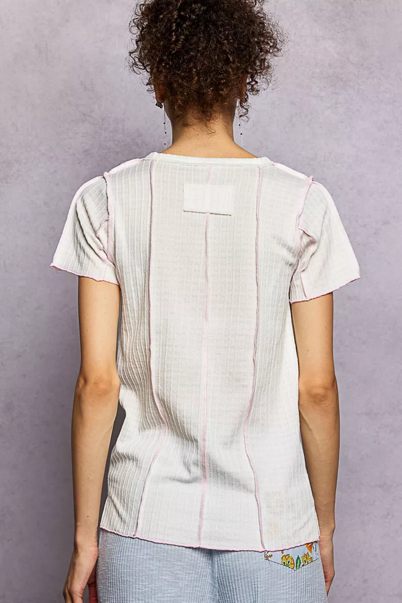 POL V-Neck Short Sleeve Top with Stitch Seam Detail
