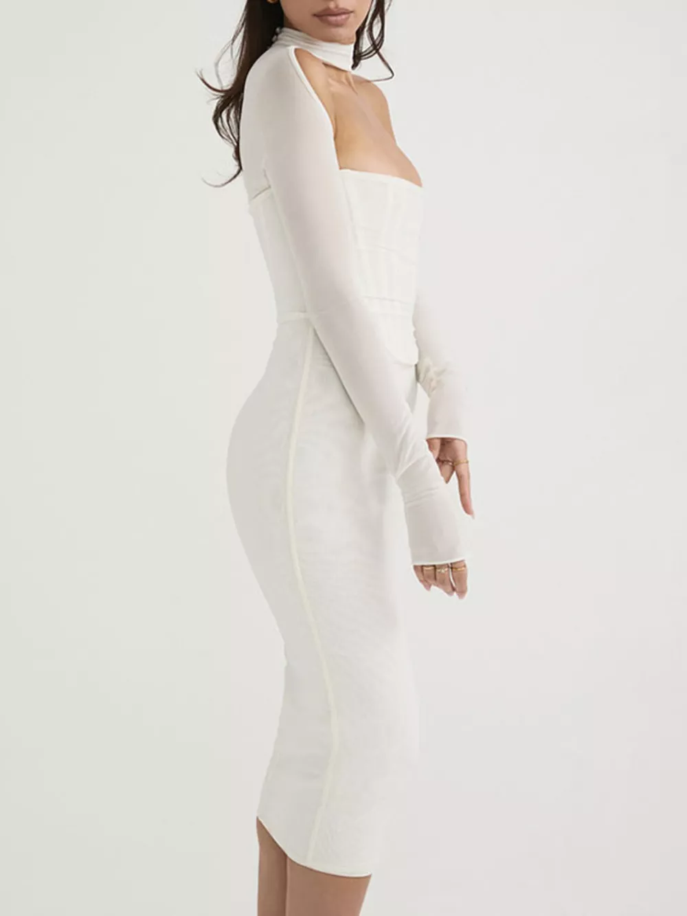 - Features:Mesh,Cutout,Sheer,Zipper