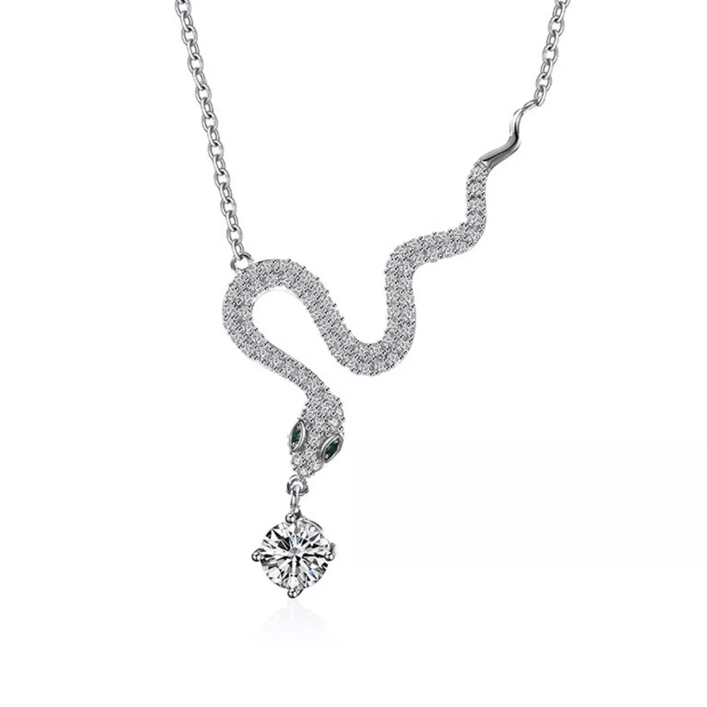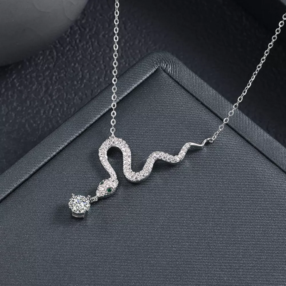 925 Sterling Silver Moissanite Snake Pendant Necklace