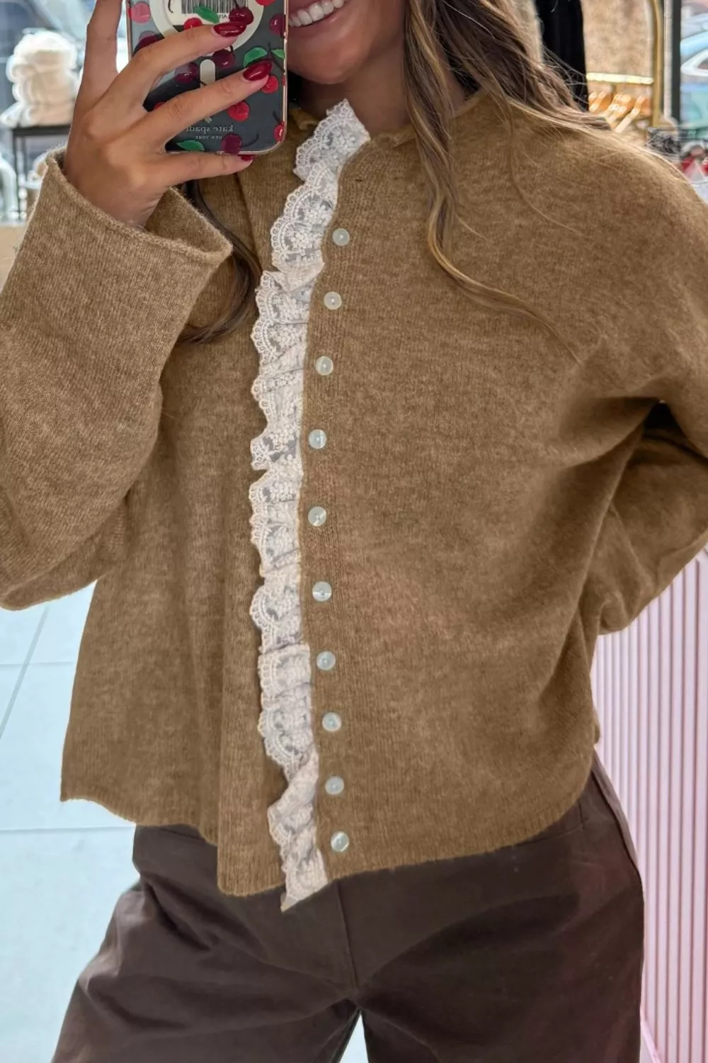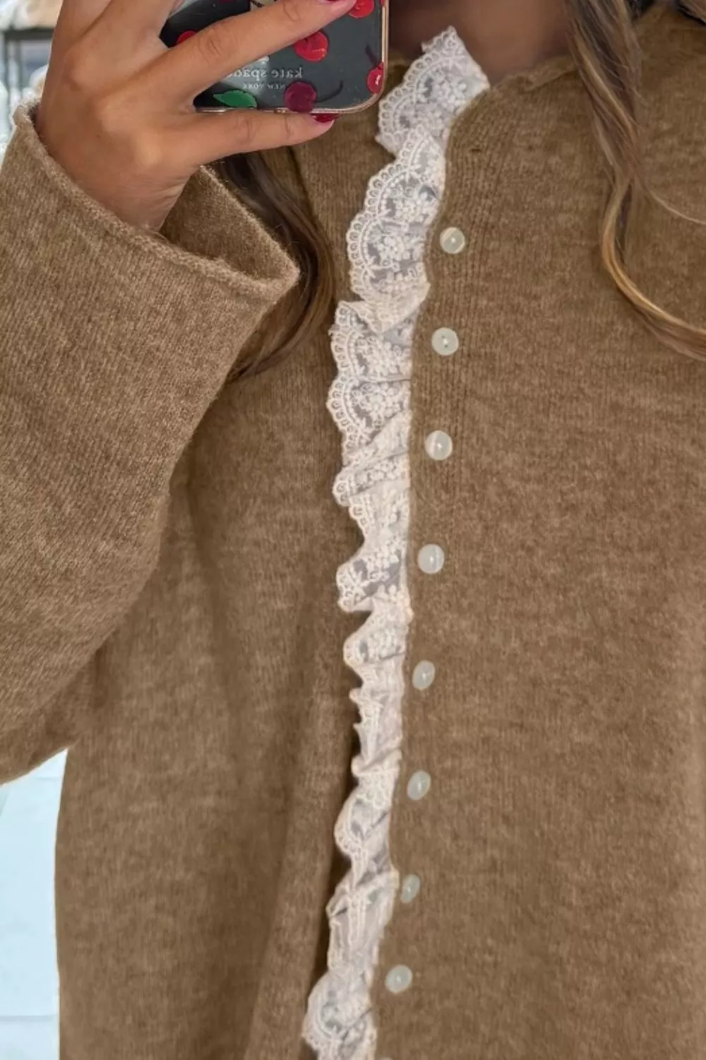 Lace Trim Button-Down Cardigan