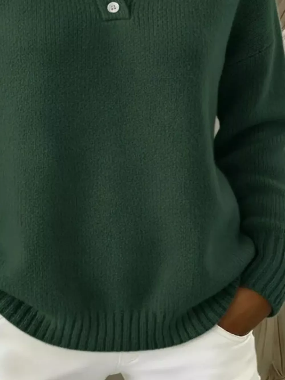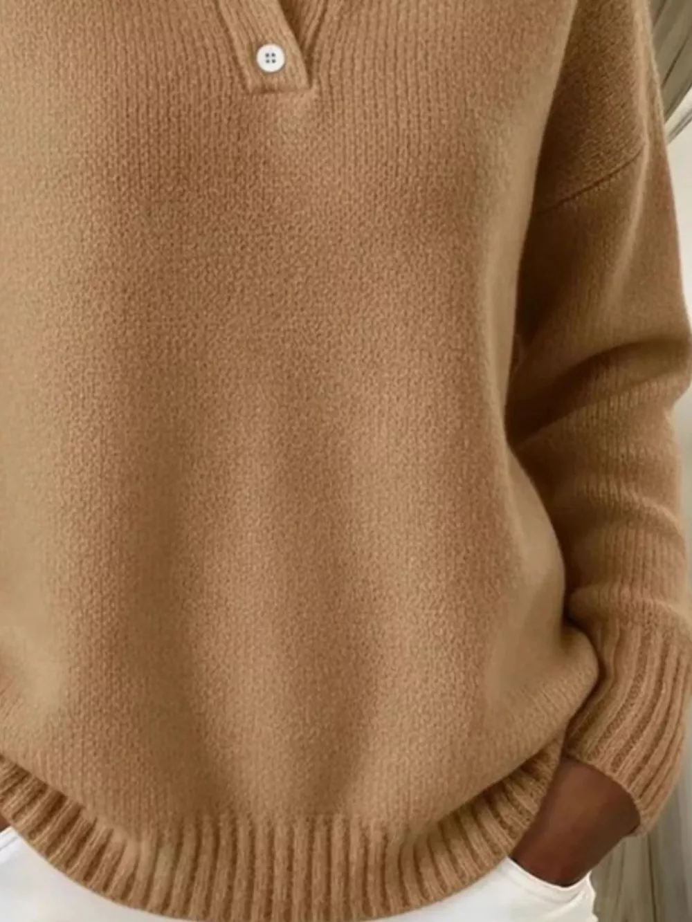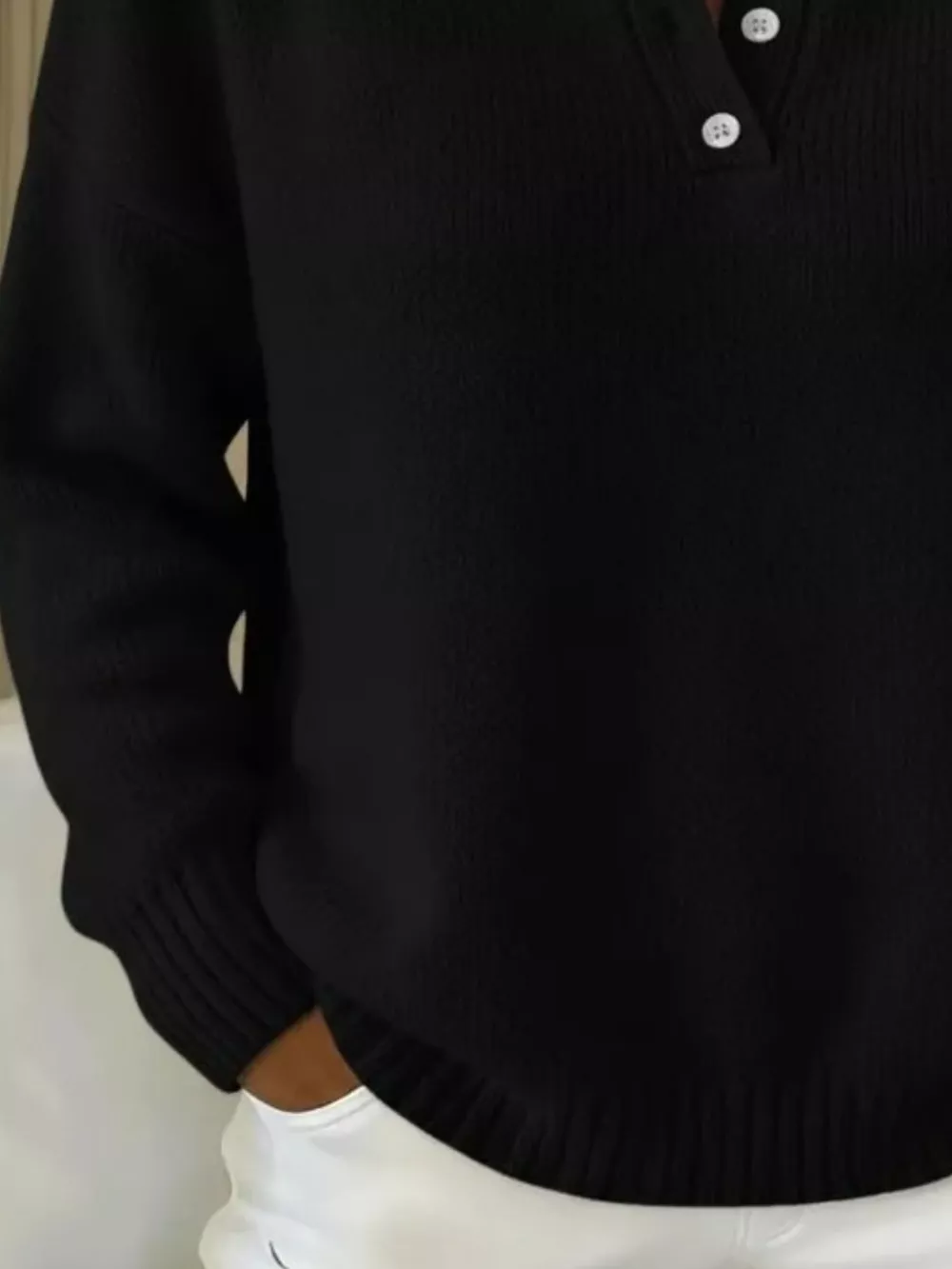 Full Size Button Detail Drop Shoulder Sweater Plus Size