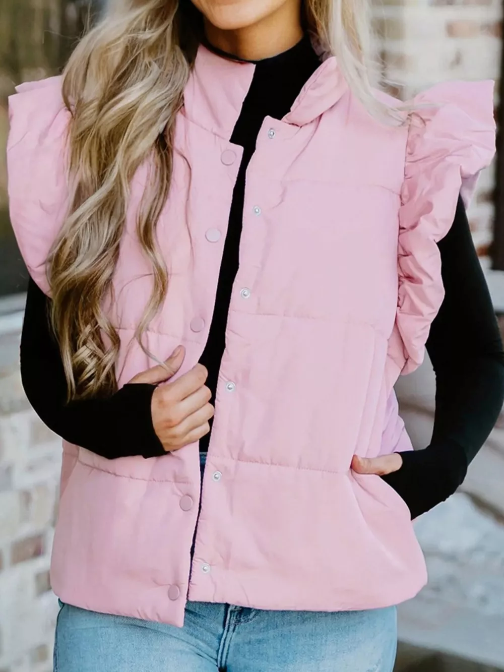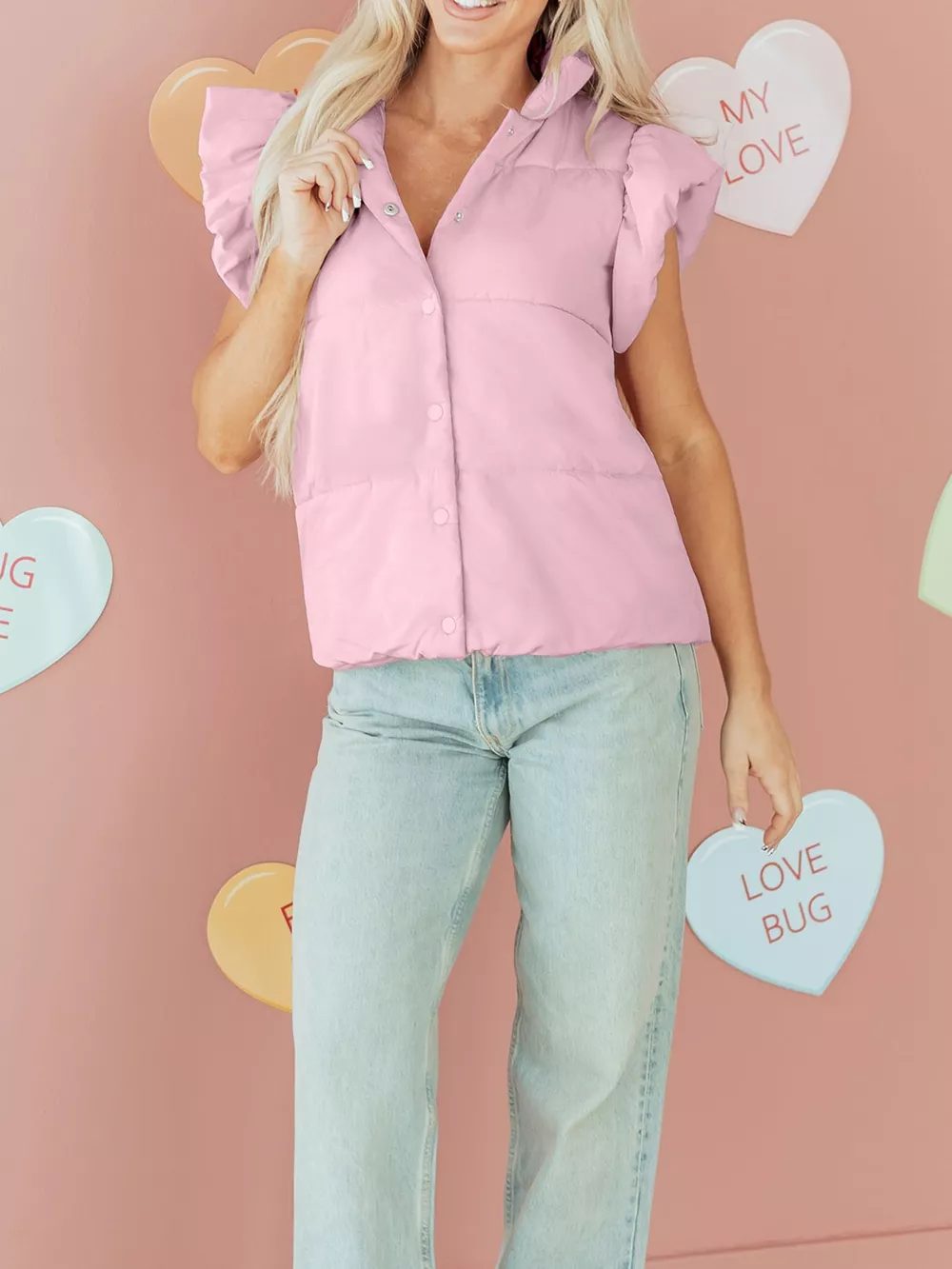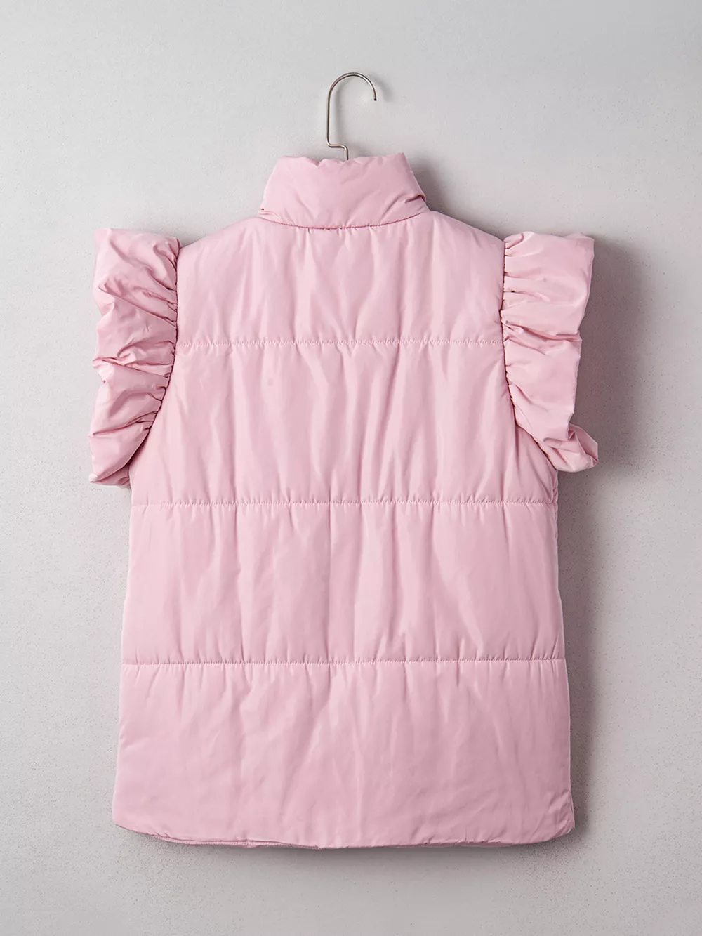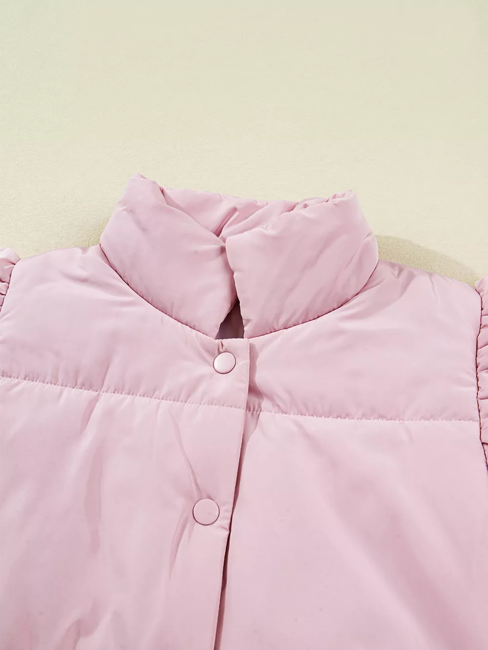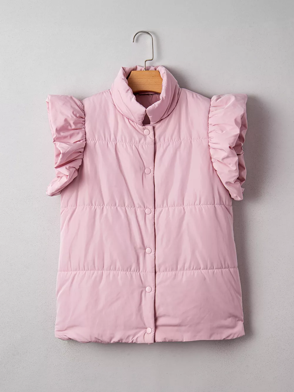 Stand Neck Flutter Sleeve Snap Button Puffer Vest