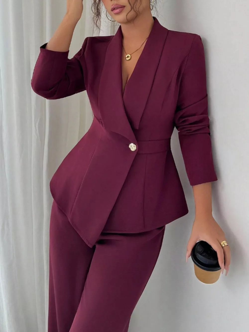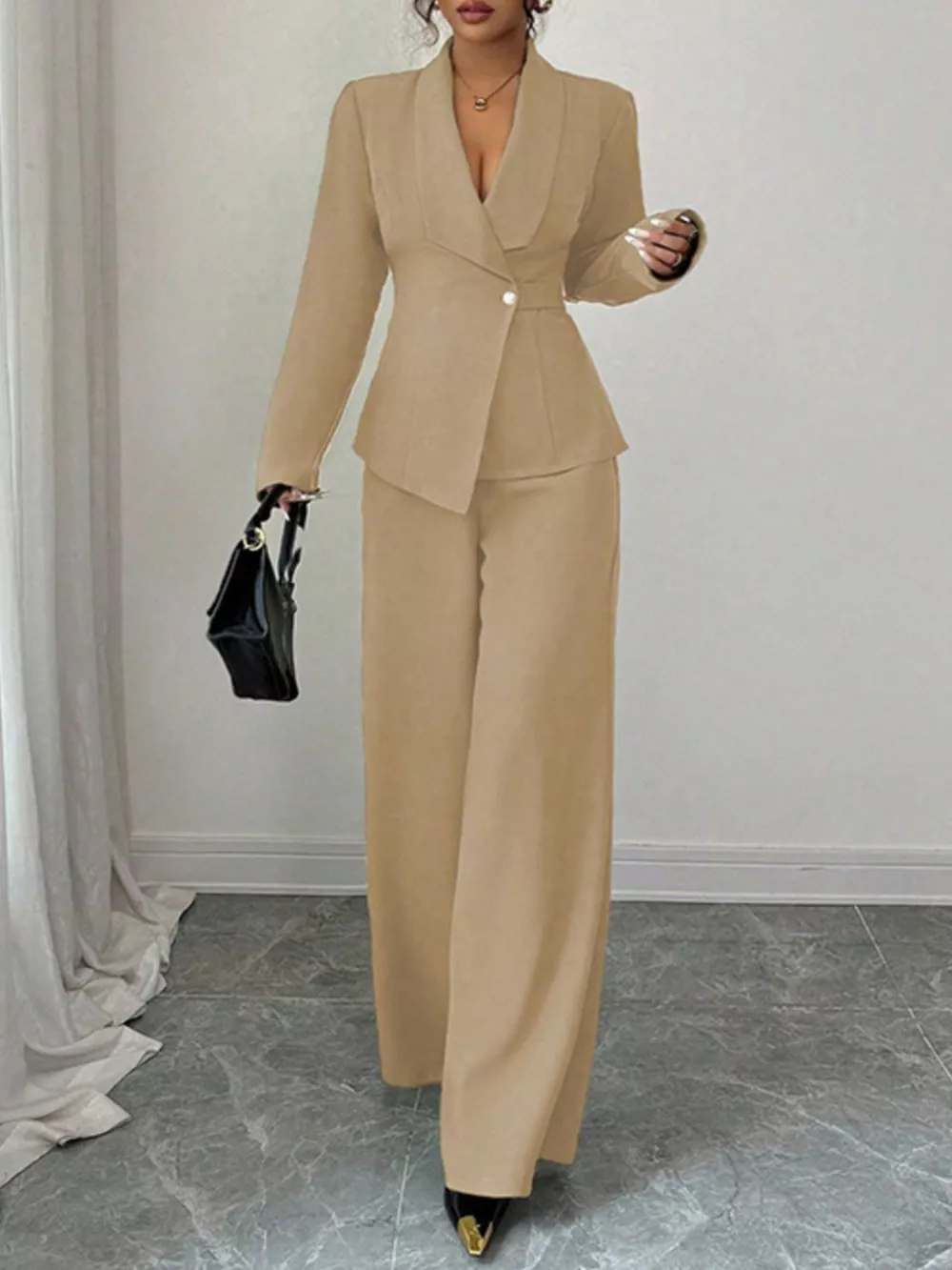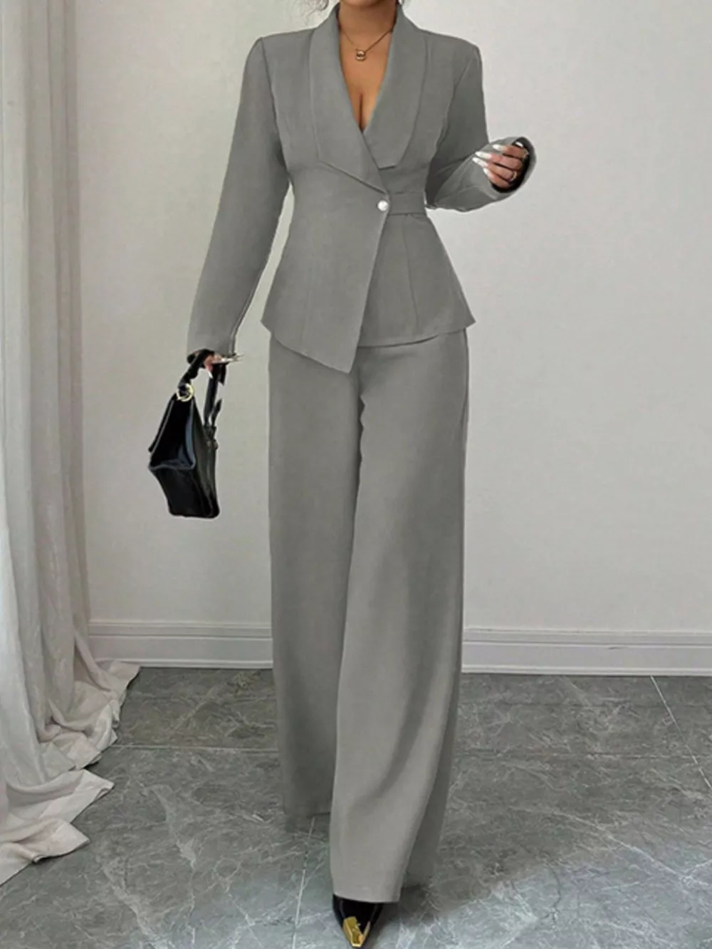 One Button Blazer and Pants Set