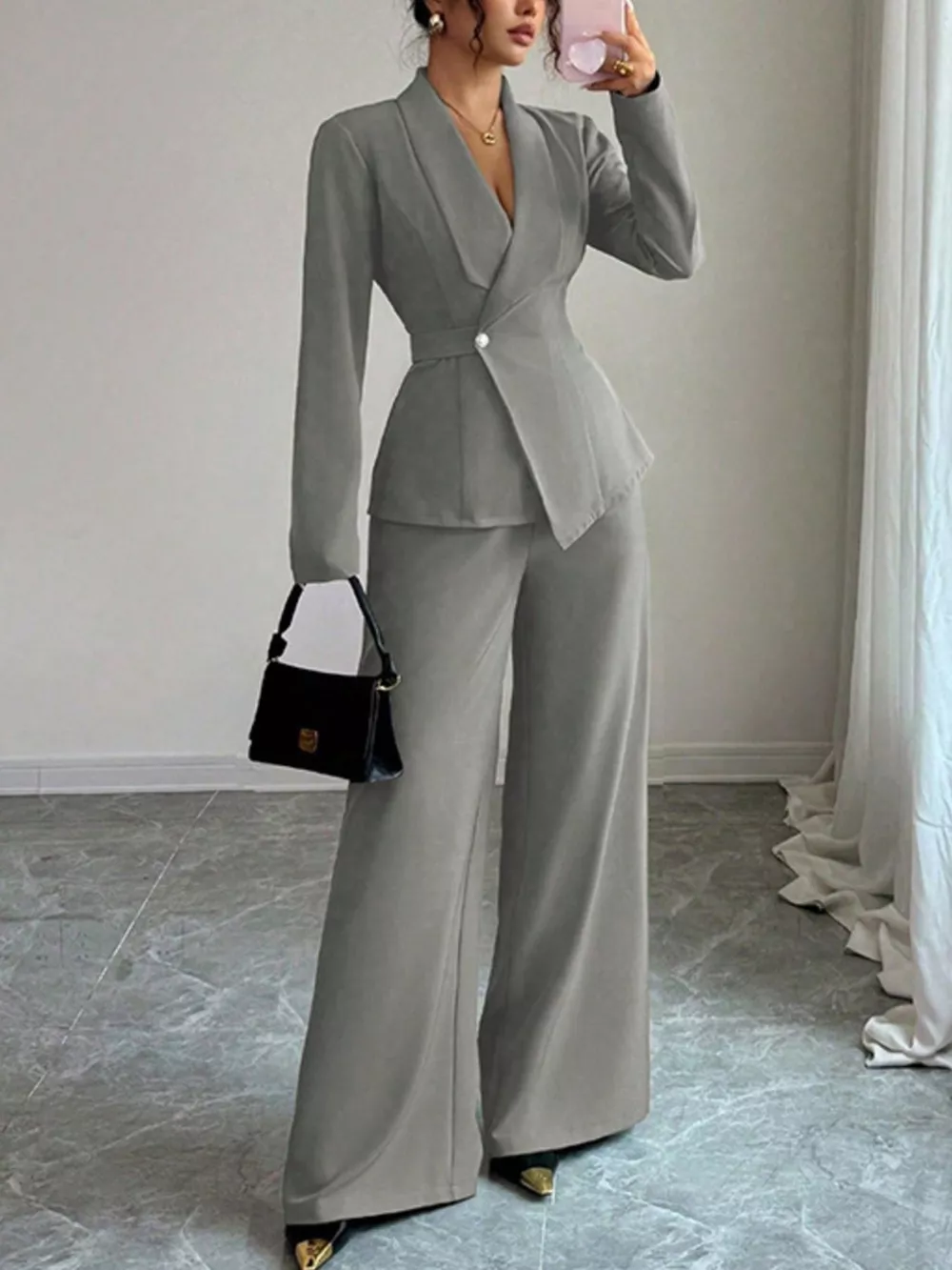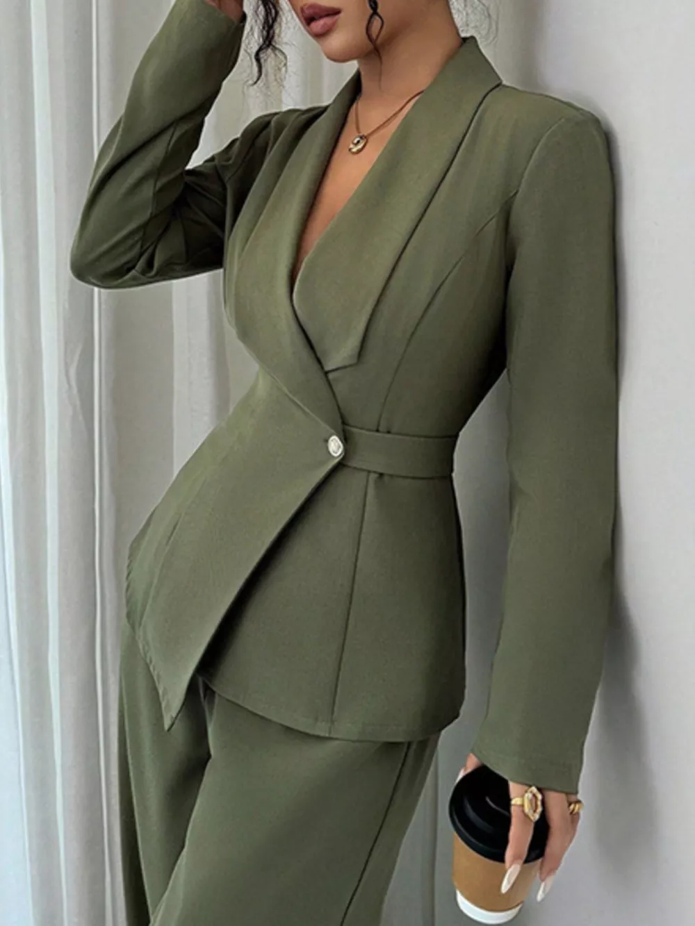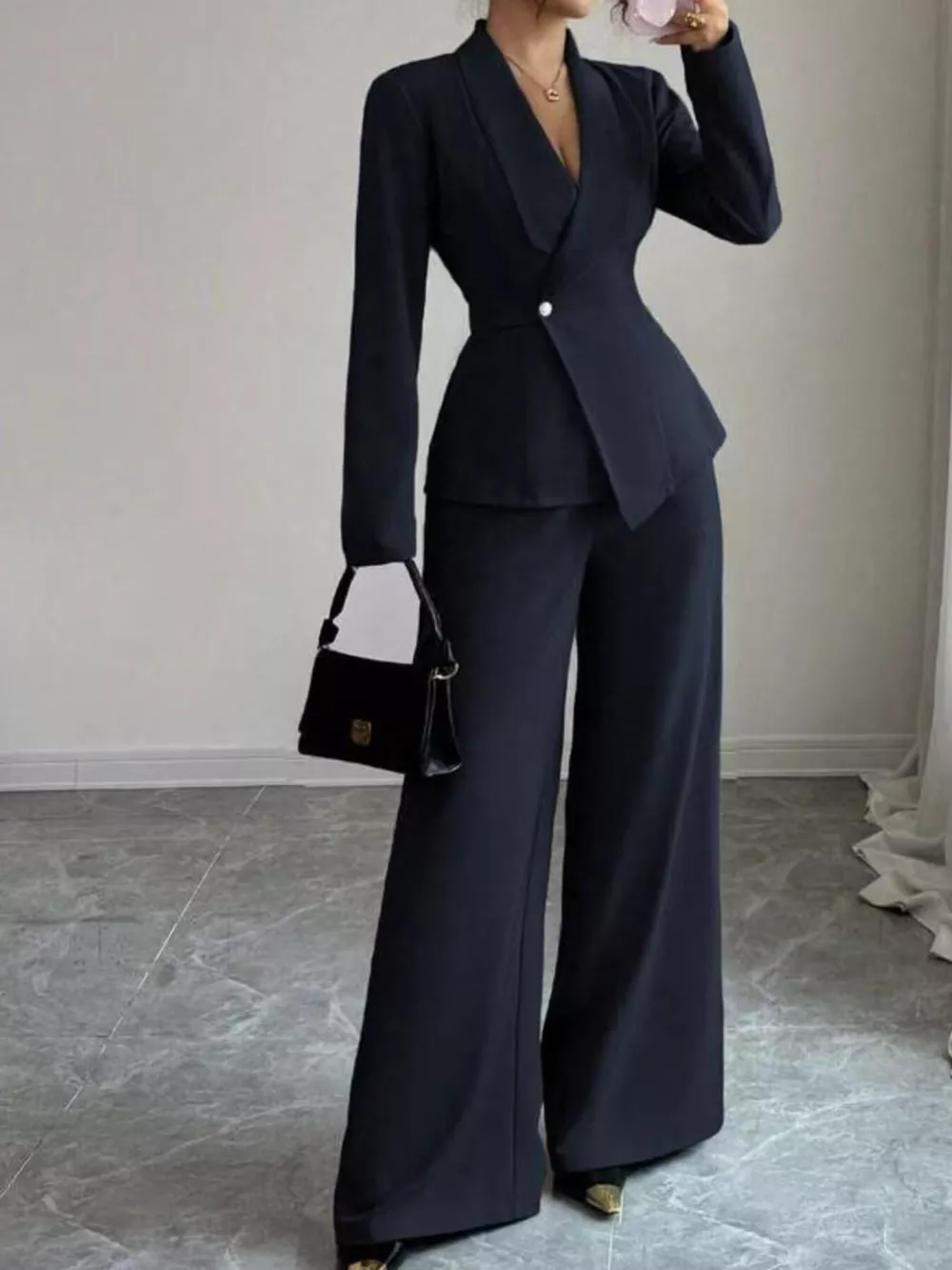 One Button Blazer and Pants Set