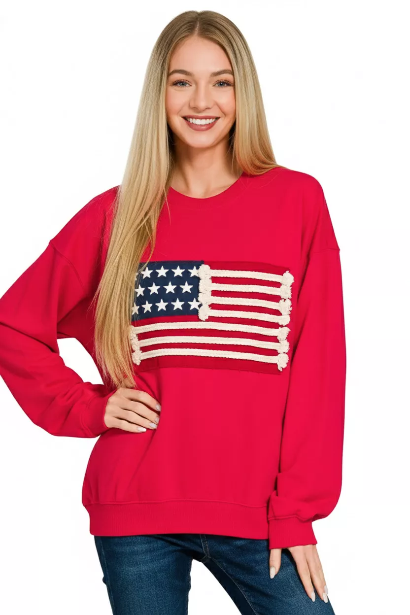 The French Terry American Flag Pullover is a patriotic and cozy choice for any occasion. This pullover features a bold American flag design on the front, perfect for showing off your national pride. Made from soft and comfortable French terry fabric, this pullover is perfect for all-day wear. With its relaxed fit and ribbed cuffs, this pullover offers both style and comfort. Whether you're out for a casual day or celebrating a patriotic event, this pullover is sure to make a statement.
