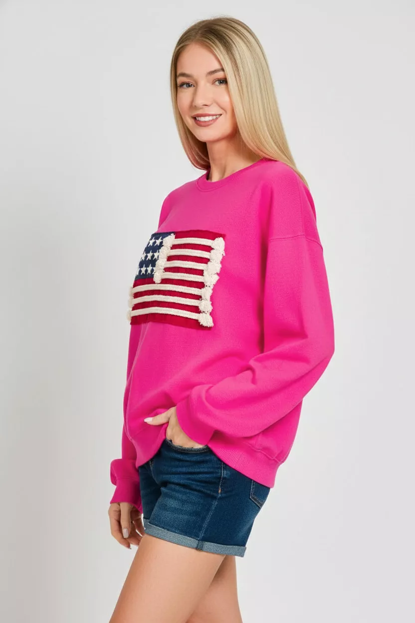 Zenana French Terry American Flag Pullover