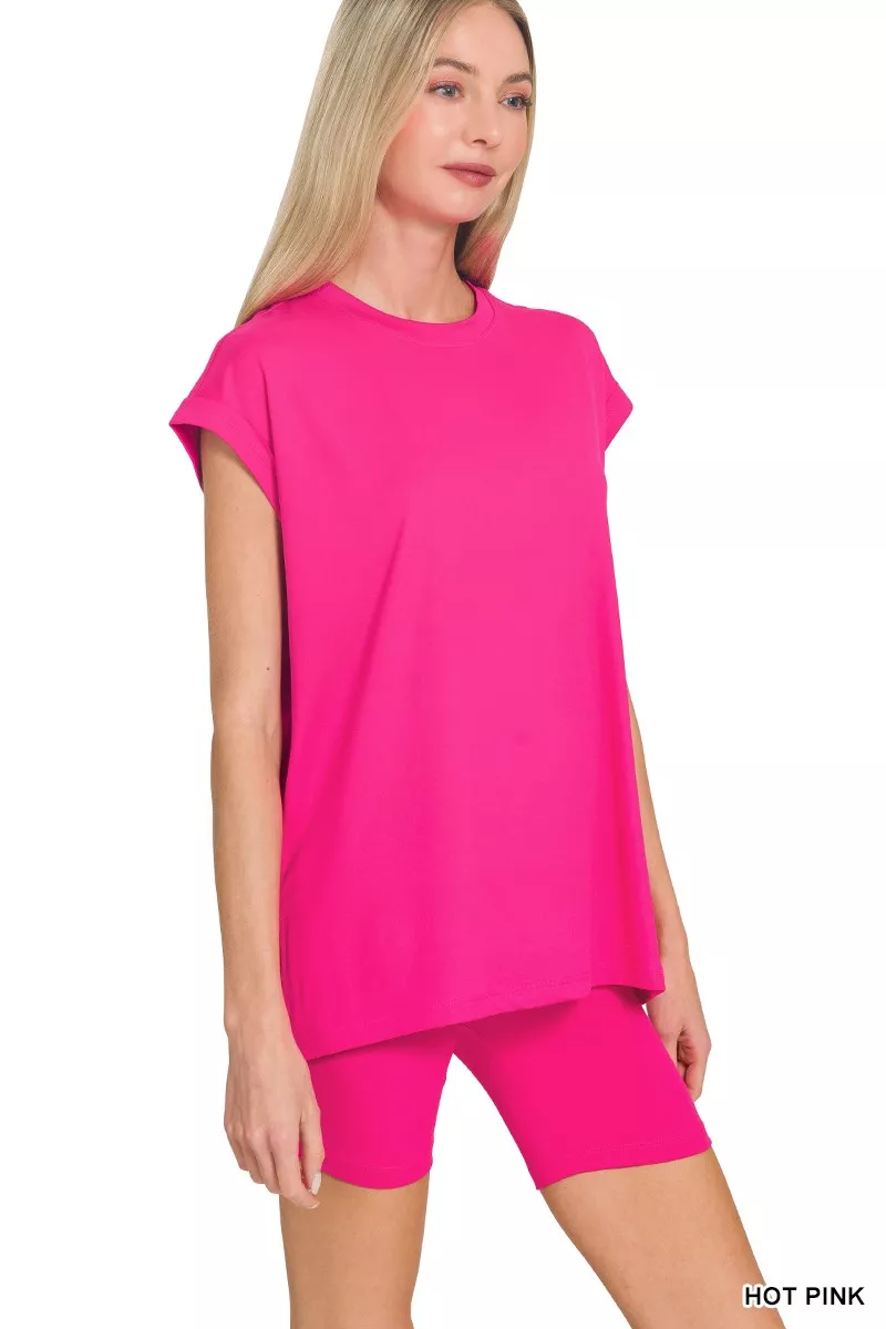 Zenana Brushed Dty Microfiber Top & Biker Shorts