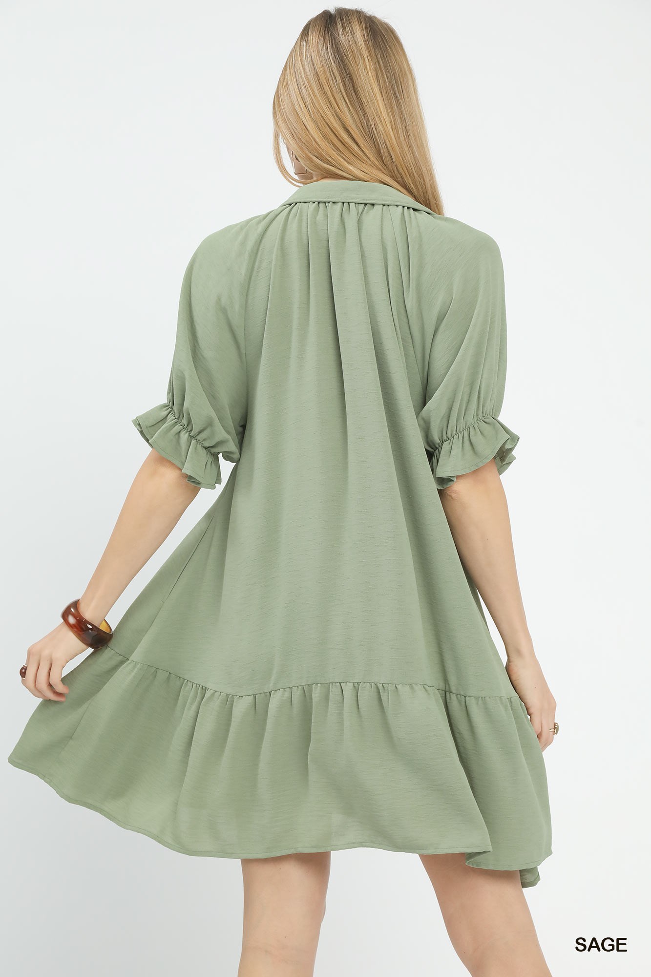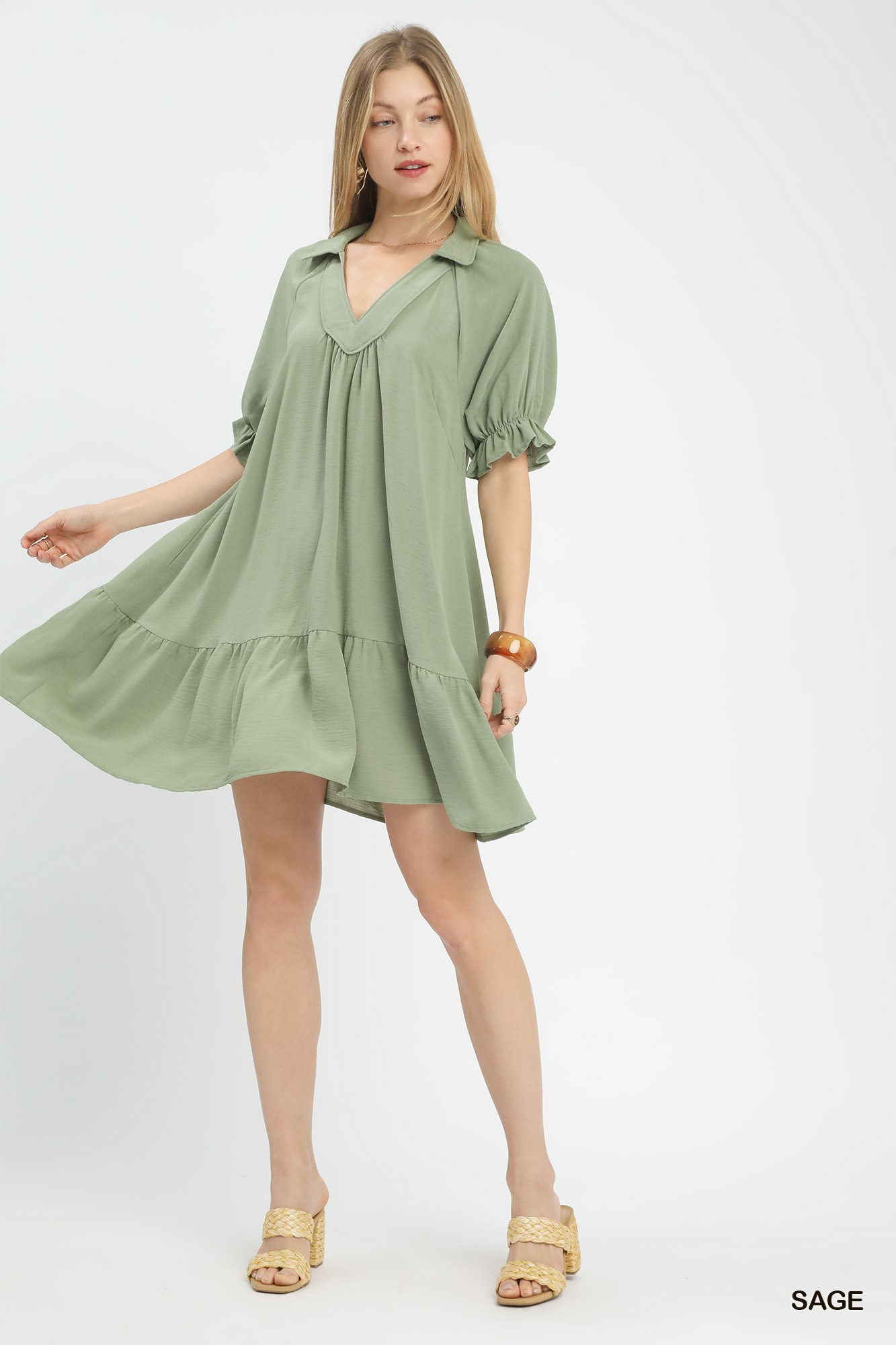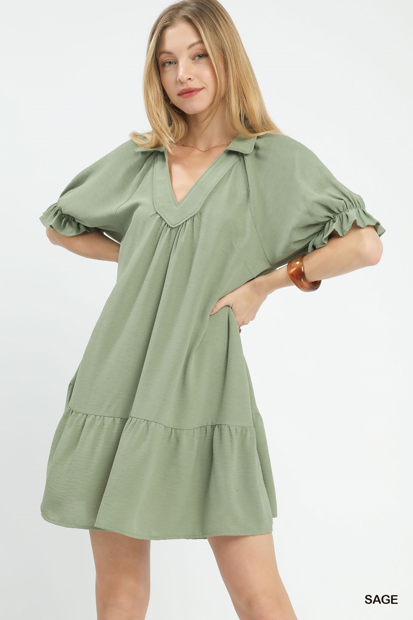 Umgee Tiered Puff Sleeve Babydoll Dress