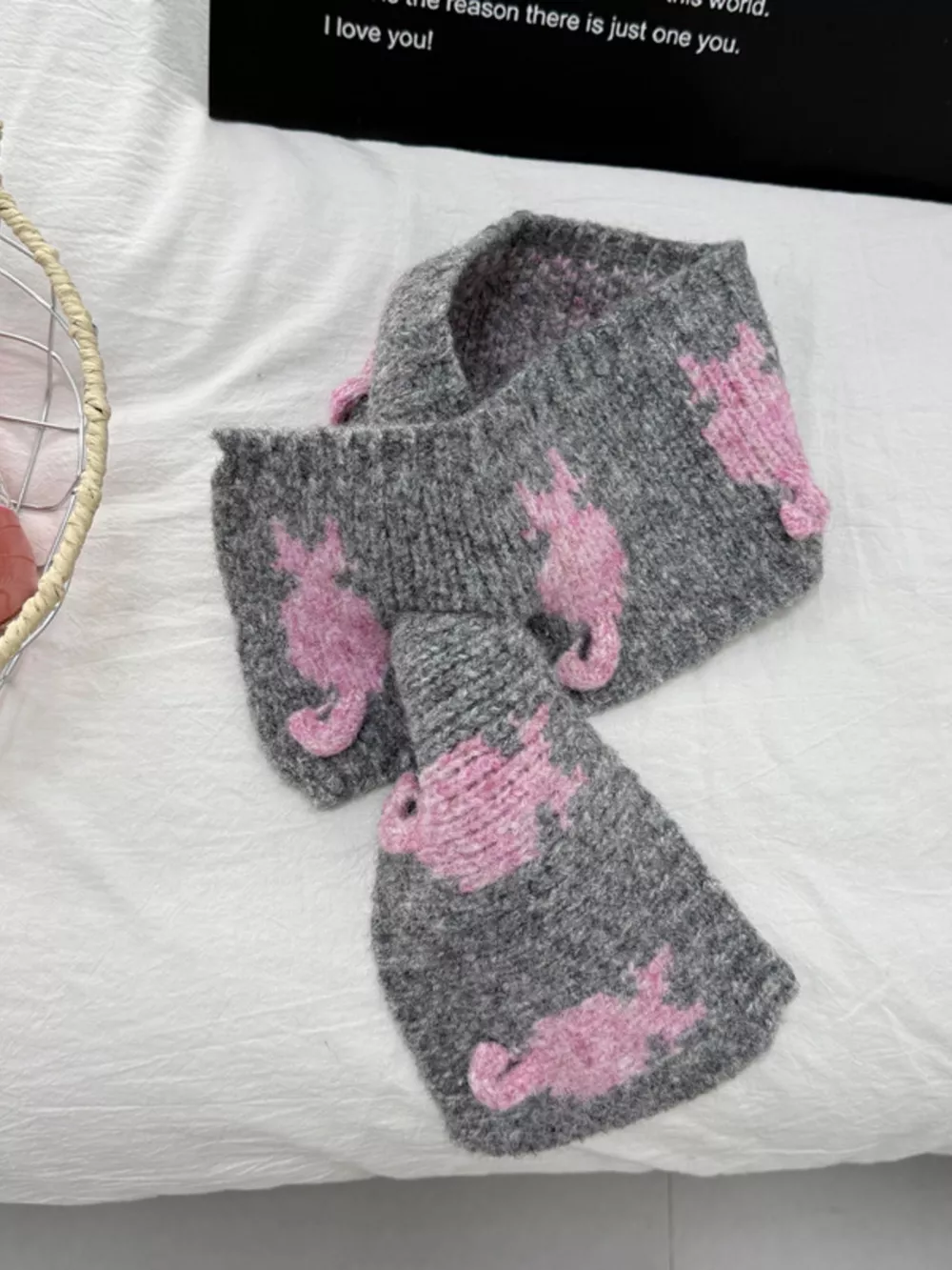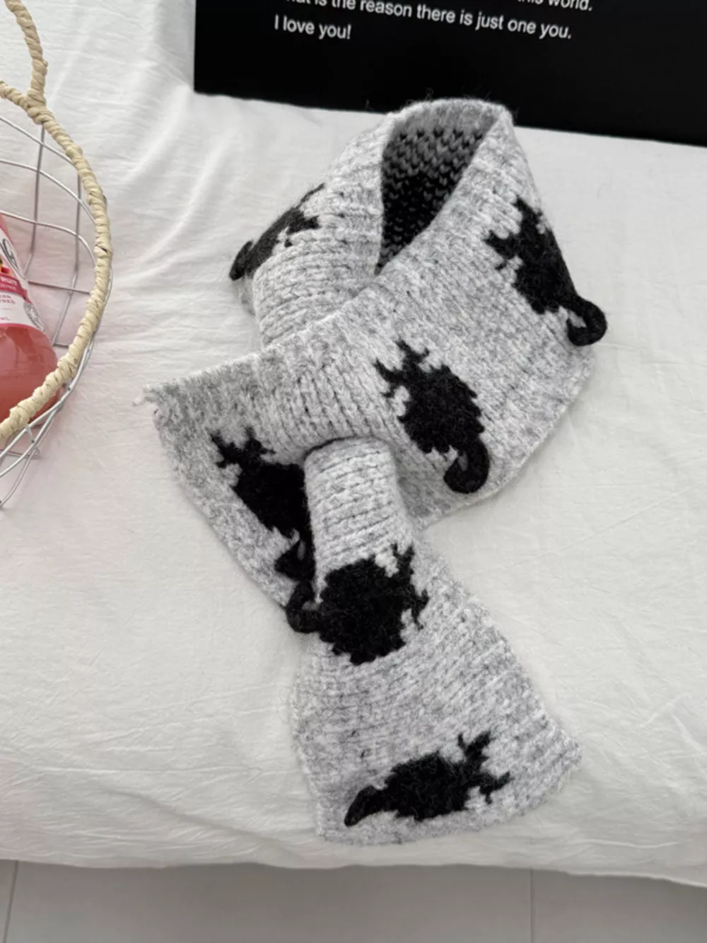 Knitted Contrast Pattern Warm Scarf