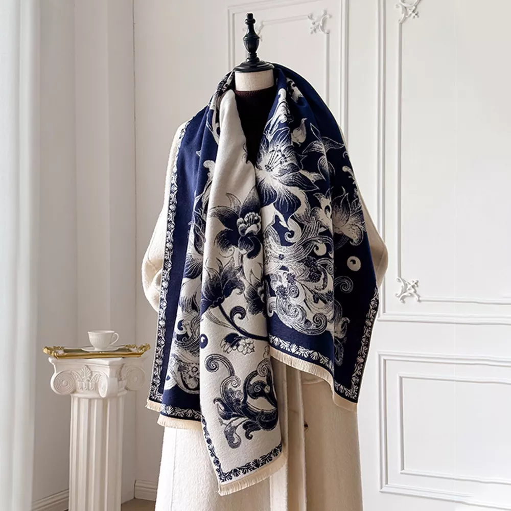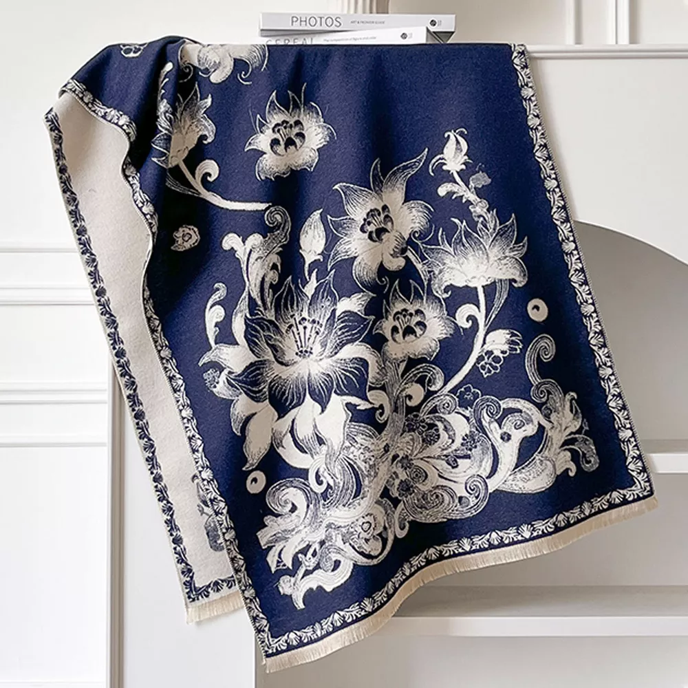 Floral Raw Hem Winter Scarf