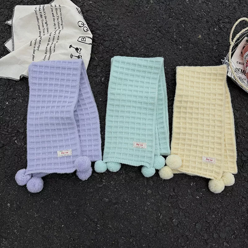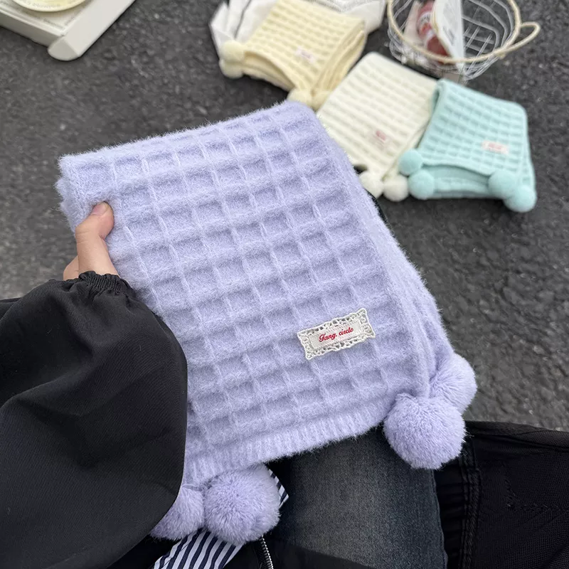Waffle Knit Pom-Pom Scarf