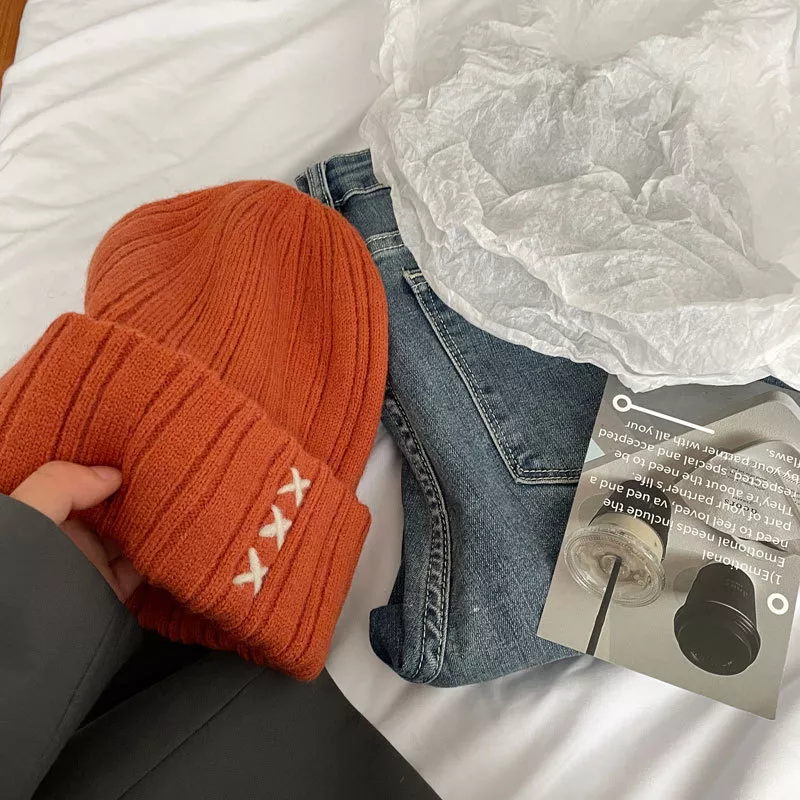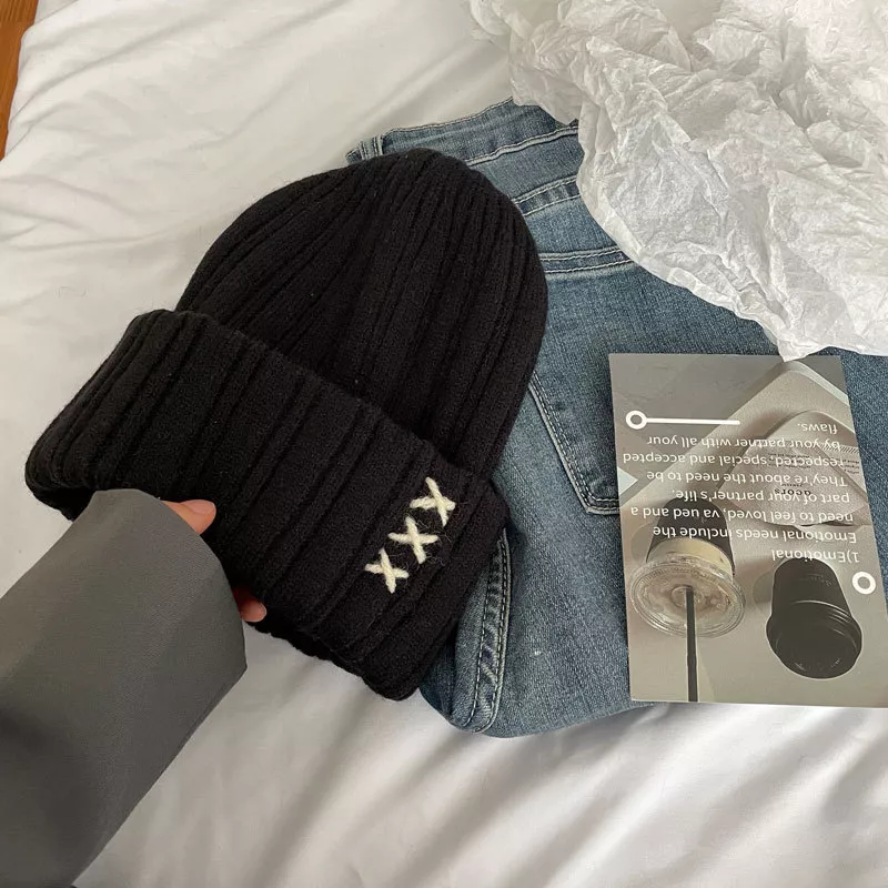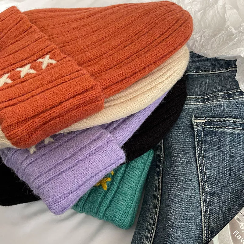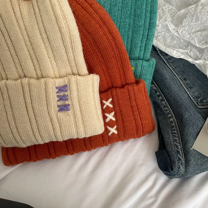 Knitted Beanie Hat with Embroidered Detail