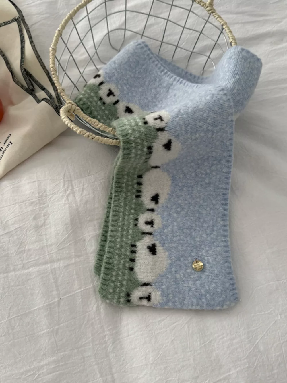 Sheep Pattern Knitted Scarf