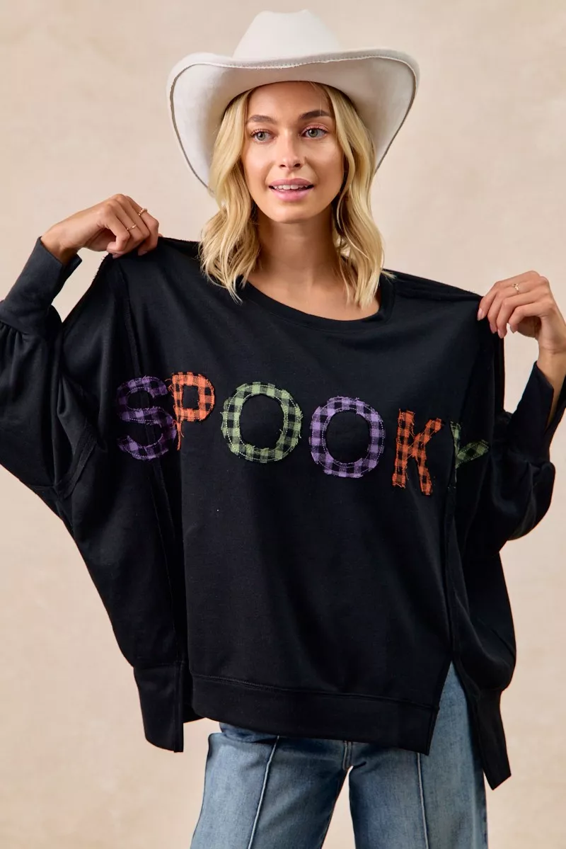 The Spook Plaid Letter Print Oversized Sweatshirt is a must-have for your casual wardrobe. The plaid letter print adds a touch of edginess to this cozy sweatshirt. With its oversized fit, it provides a relaxed and comfy feel perfect for lounging or running errands. The spooky vibes make it a fun and unique piece for any casual outfit. Stay stylish and comfortable with this trendy and spooky oversized sweatshirt!