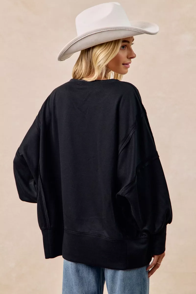 BiBi Spook Plaid Letter Print Oversized Sweatshirt