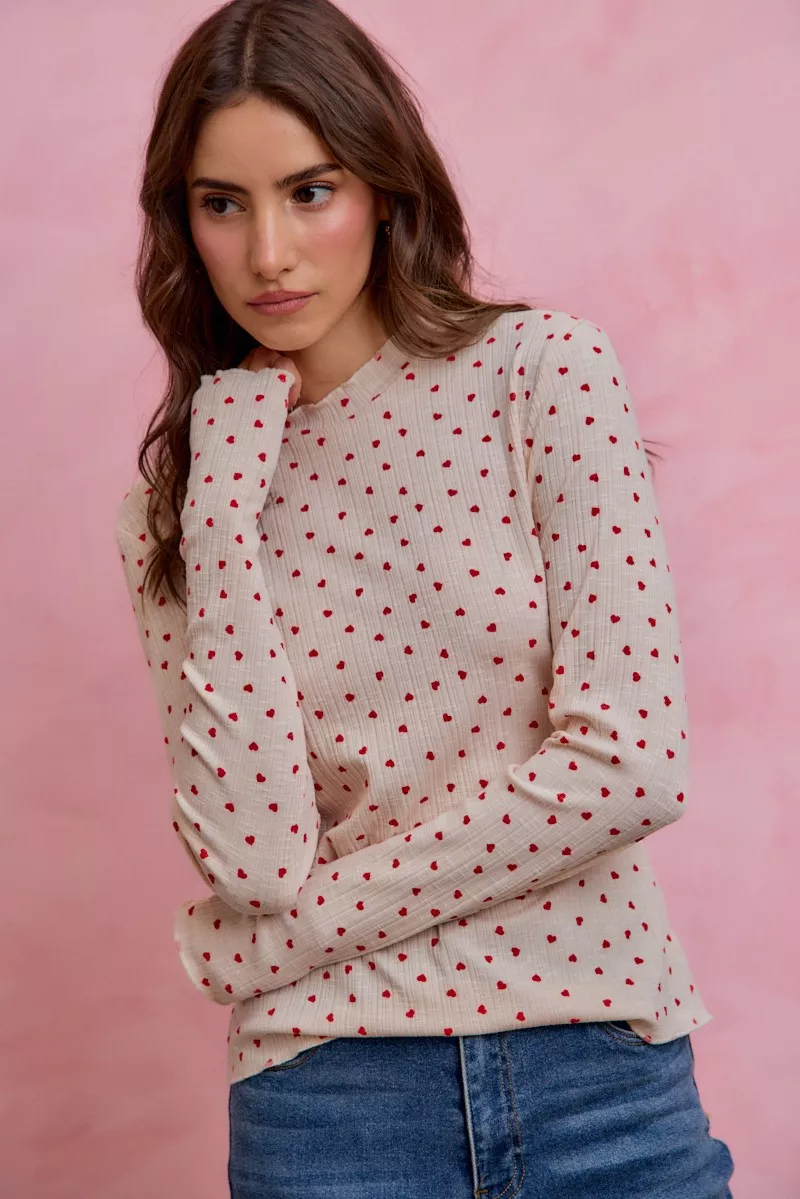 SO ME Ditsy Heart All Over Slub Rib Knit Valentine Top