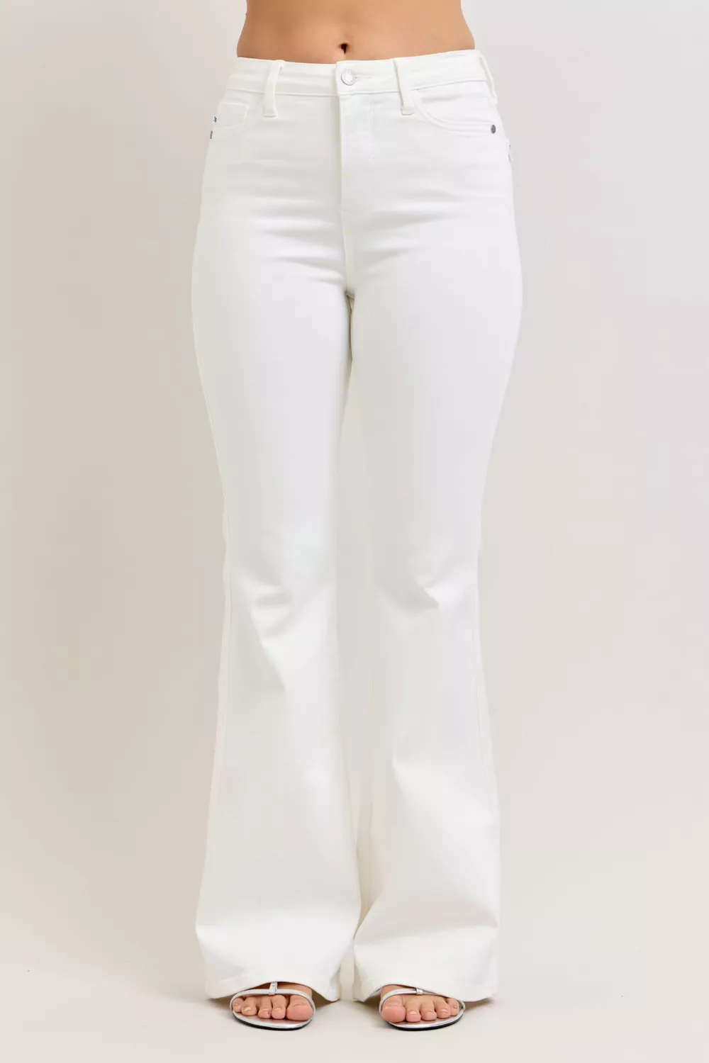 The High-Waisted Tummy Control Flare Jeans are a must-have staple for your wardrobe. With their high-rise design and tummy control feature, these jeans offer a flattering and comfortable fit. The flare leg silhouette adds a touch of retro flair to your outfit, perfect for a chic and stylish look. Whether dressed up with heels and a blouse or kept casual with sneakers and a t-shirt, these versatile jeans can be worn for various occasions. Upgrade your denim collection with the figure-enhancing and trendsetting High-Waisted Tummy Control Flare Jeans today!