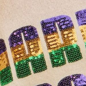 This Mardi Gras Sequin Lettering Knit Top is a dazzling piece that will make you stand out in any crowd. The vibrant colors and sequin detailing give it a fun and festive look perfect for celebrating. Made from a comfortable knit fabric, it is both stylish and easy to wear. Whether you're heading to a parade or a party, this top is sure to be a showstopper. Embrace the spirit of Mardi Gras with this stunning and eye-catching top!