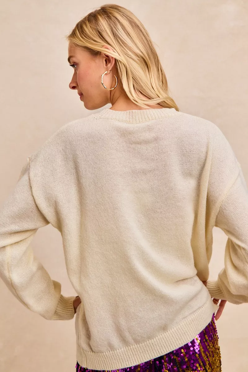 BiBi Mardi Gras Sequin Lattering Knit Top