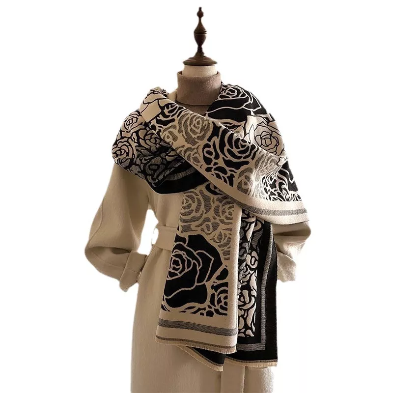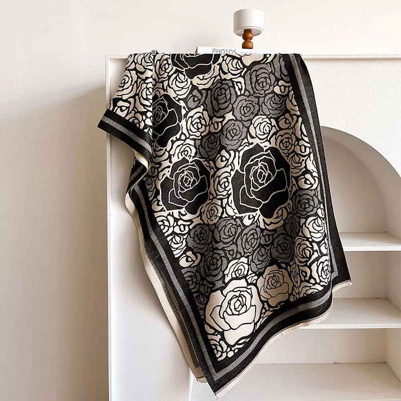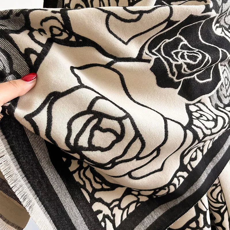 Rose Pattern Raw Hem Scarf