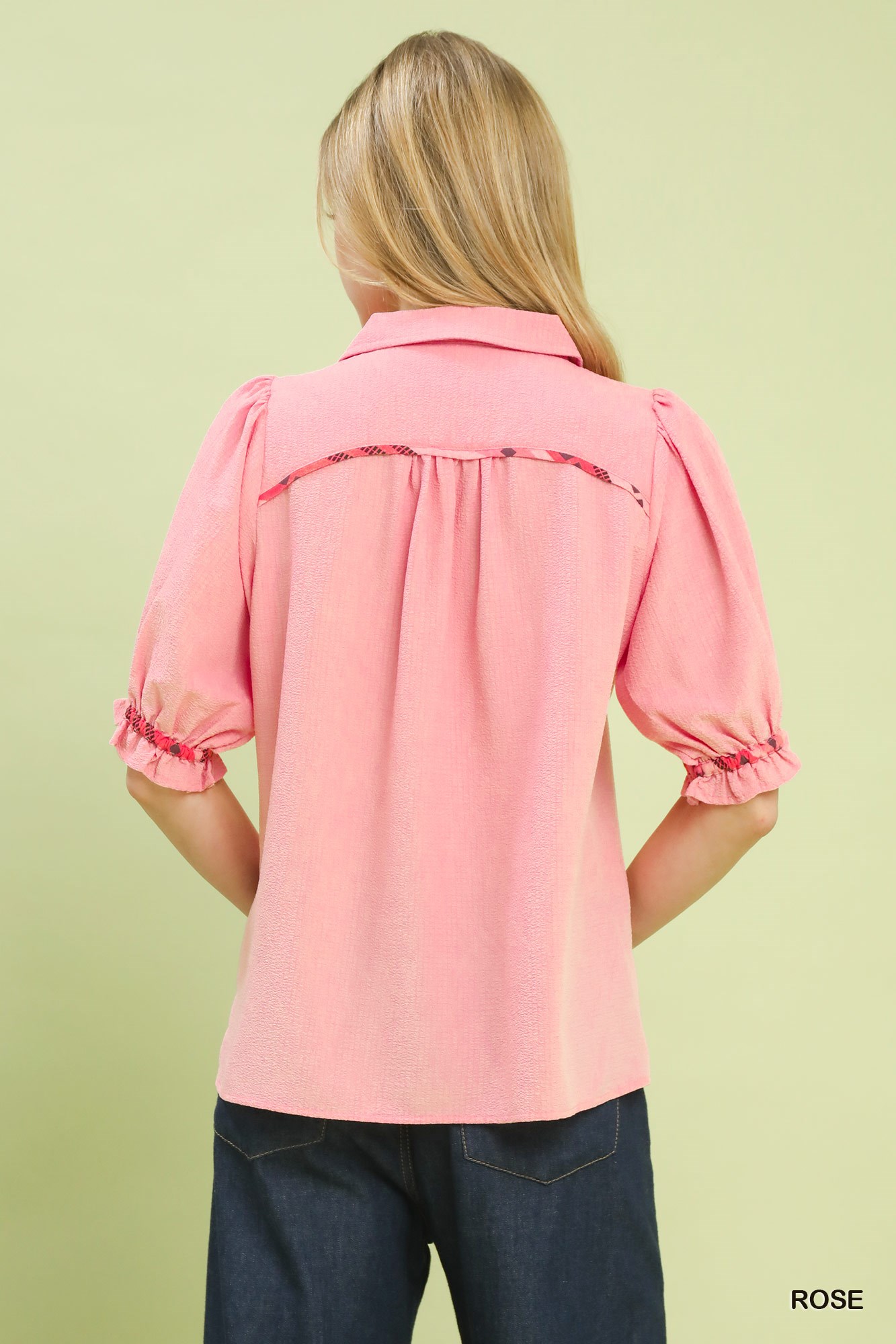 Umgee Scalloped Trim Blouse with Puff Sleeves