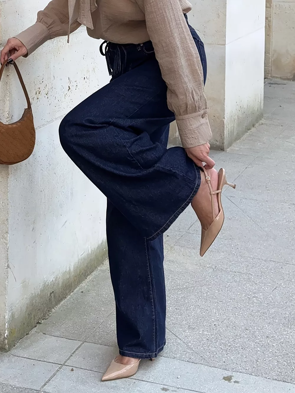 Tied Loose Fit Flare Jeans