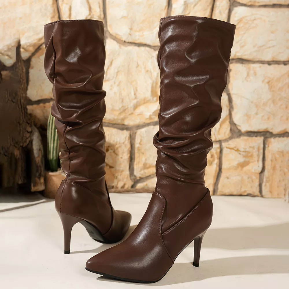 Pointed-Toe Stiletto Heel Knee-High Boots