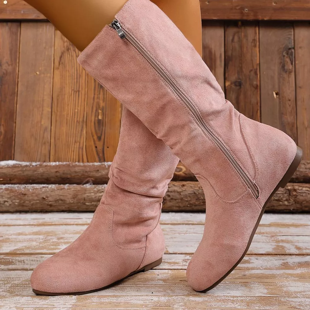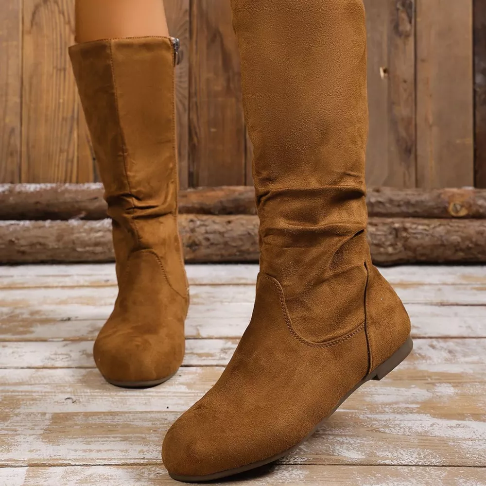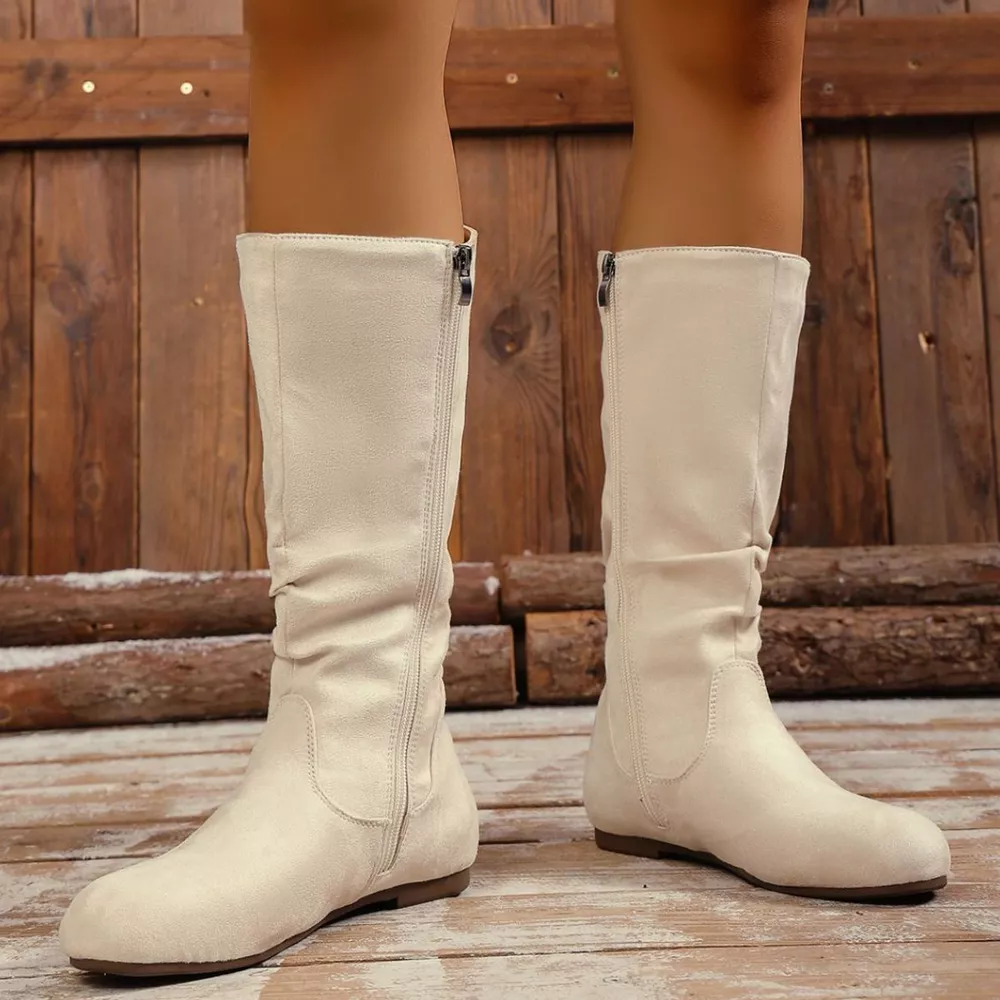Round Toe Side Zip Boots