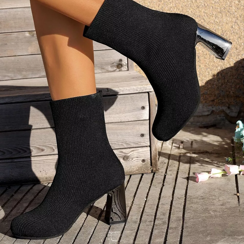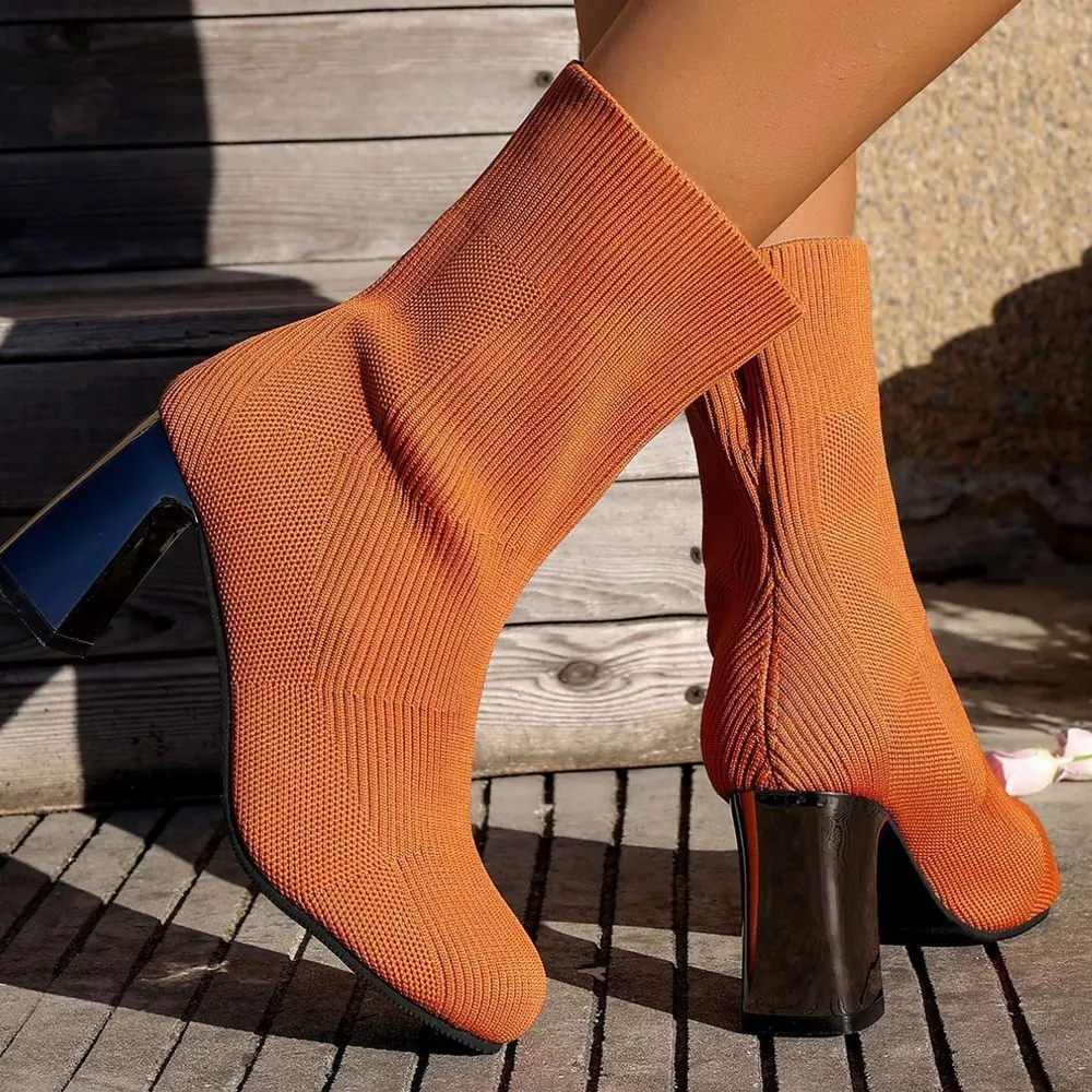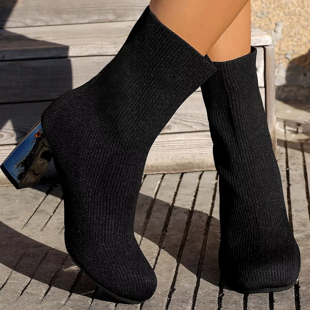 Round Toe Block Heels Boots