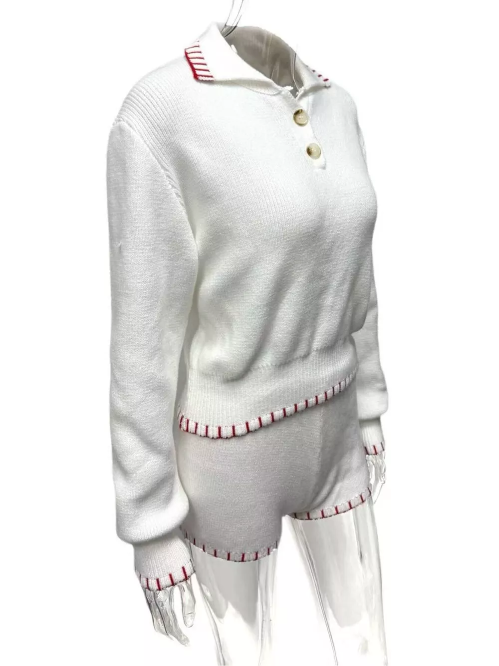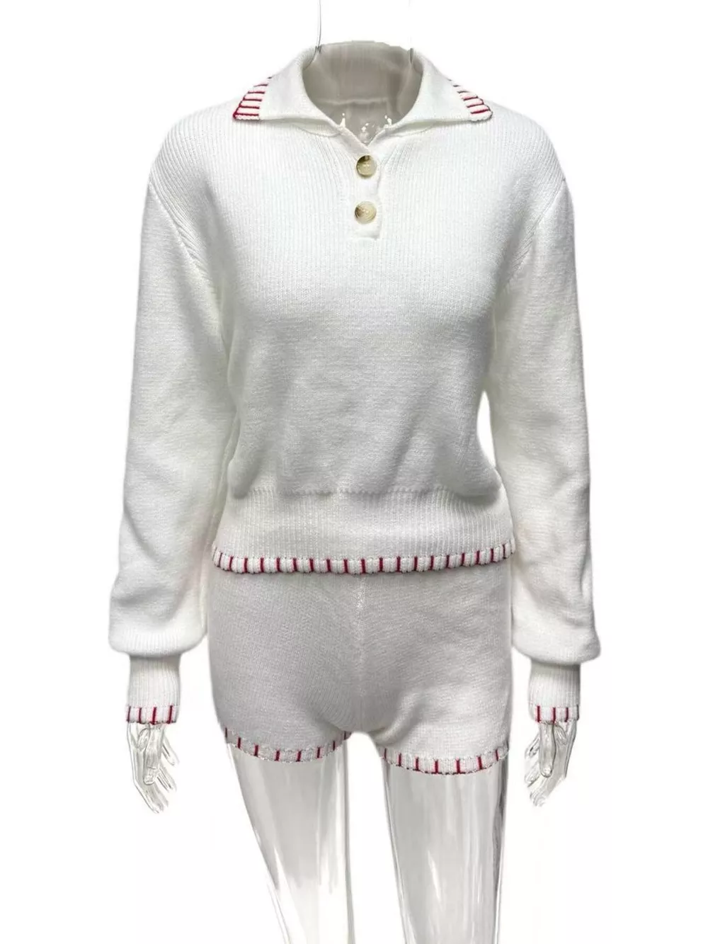 Casual Knit Long Sleeve Top and Shorts Sweater Set