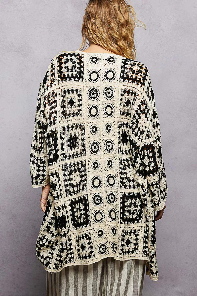 POL Open Front Crochet Cardigan with Granny Square Pattern