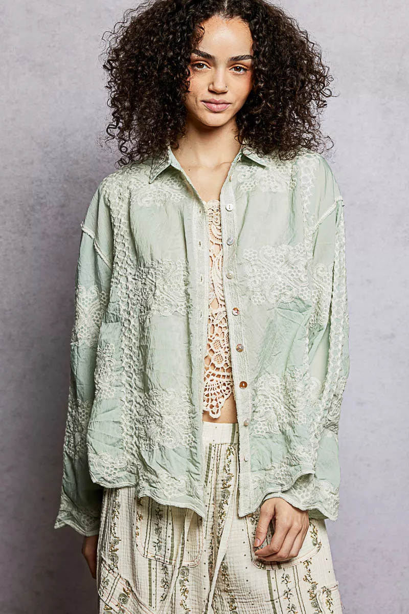 POL Embroidery Button Down Long Sleeve Shirt