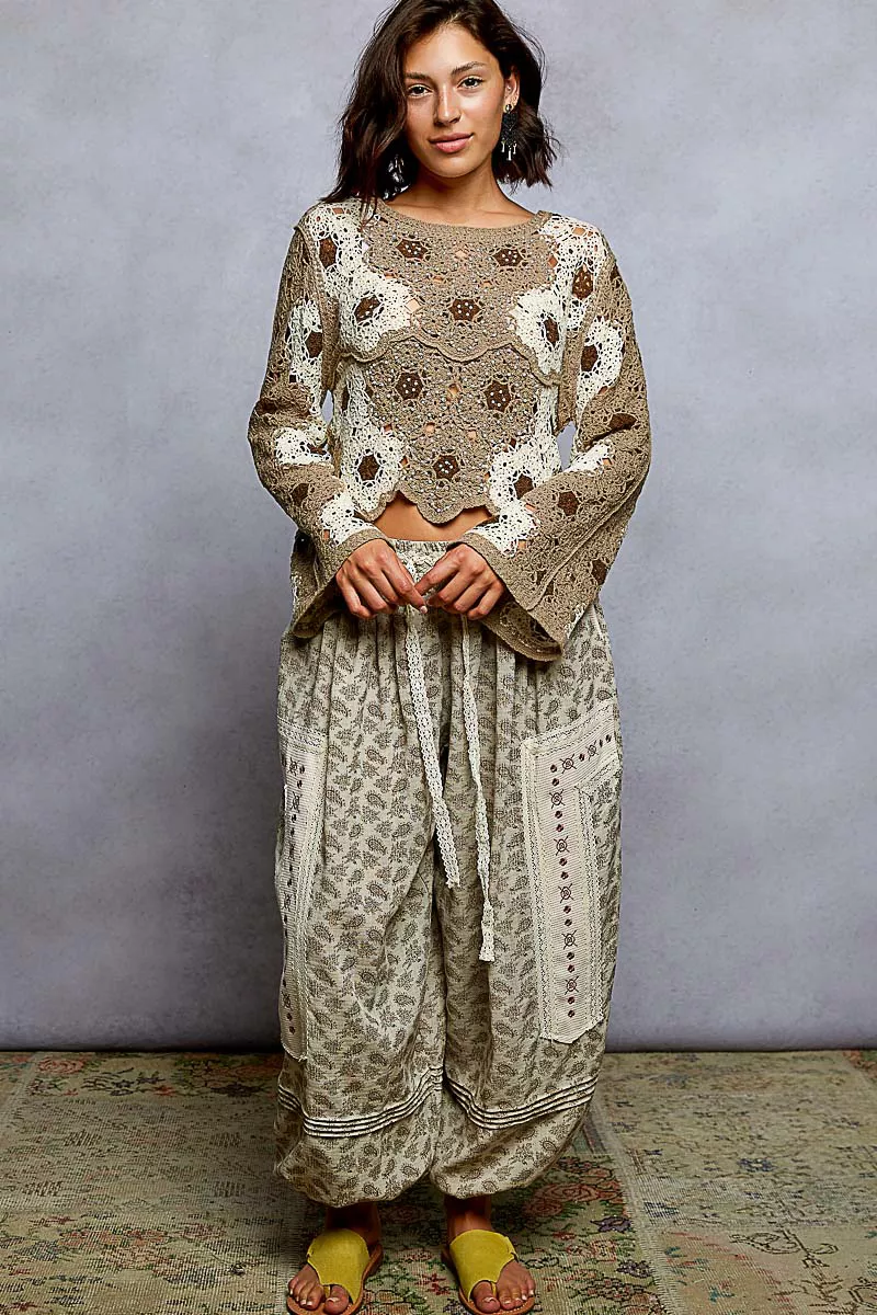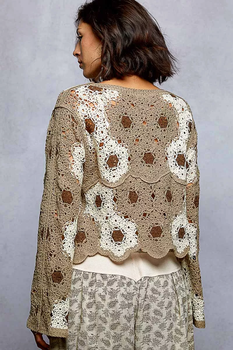 The round neck Long Sleeve Crochet Top with Floral Weave Knit Patterns and Bead Detail is a unique and stylish piece that combines intricate craftsmanship with feminine charm. The floral weave knit patterns add a delicate and romantic touch to the top. The beads detail enhances the design with a subtle touch of elegance and texture. With a relaxed fit and long sleeves, it offers both comfort and sophistication. Embrace a bohemian-inspired look with this beautifully designed crochet top that is sure to make a statement!