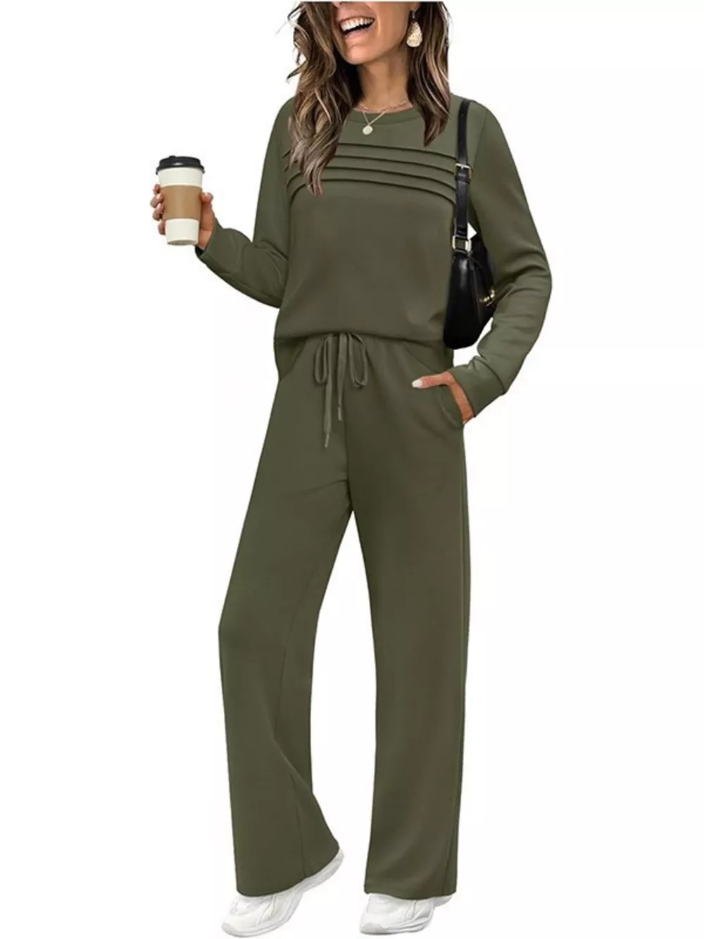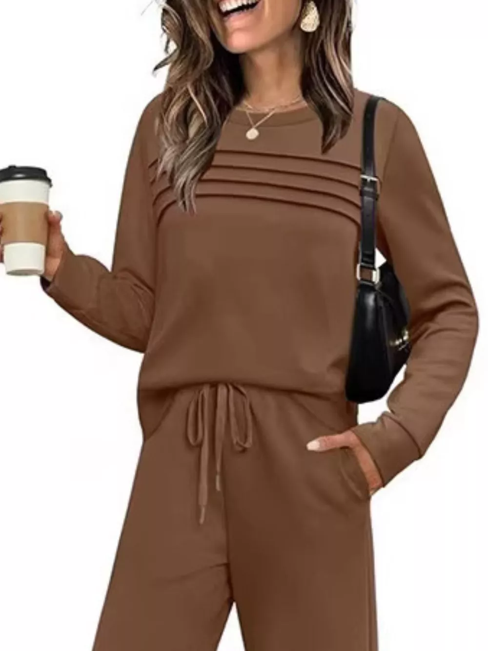 Full Size Long Sleeve Round Neck Top and Pants Set Plus Size
