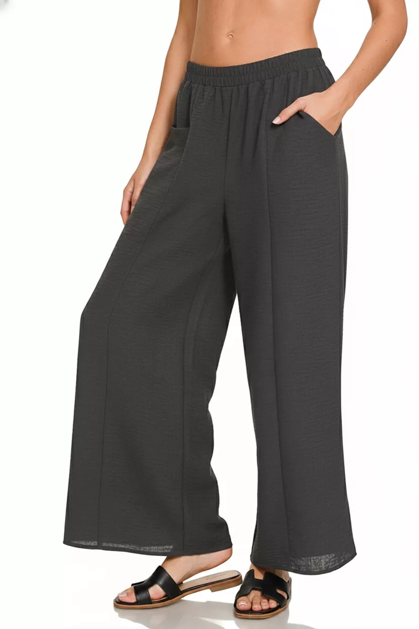 Zenana Woven Airflow Elastic Waistband Pants