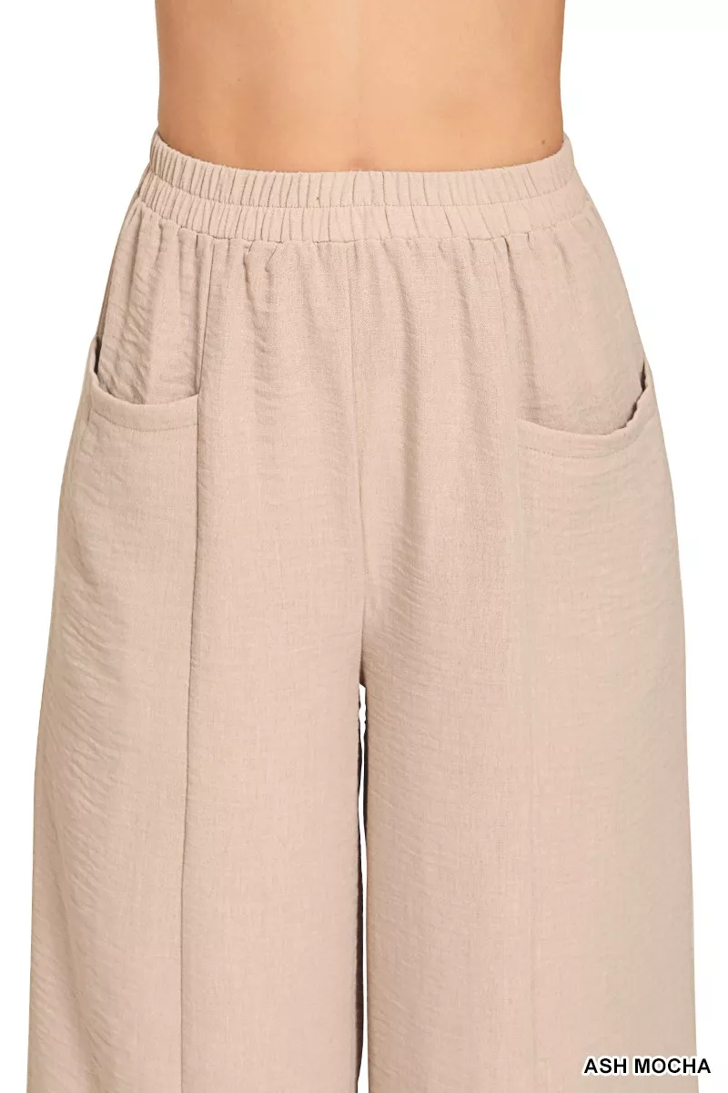 Zenana Woven Airflow Elastic Waistband Pants