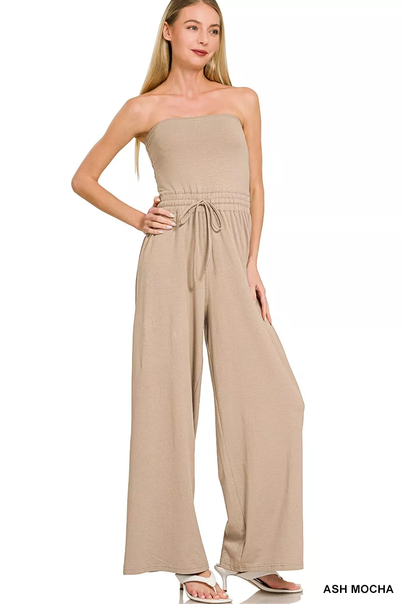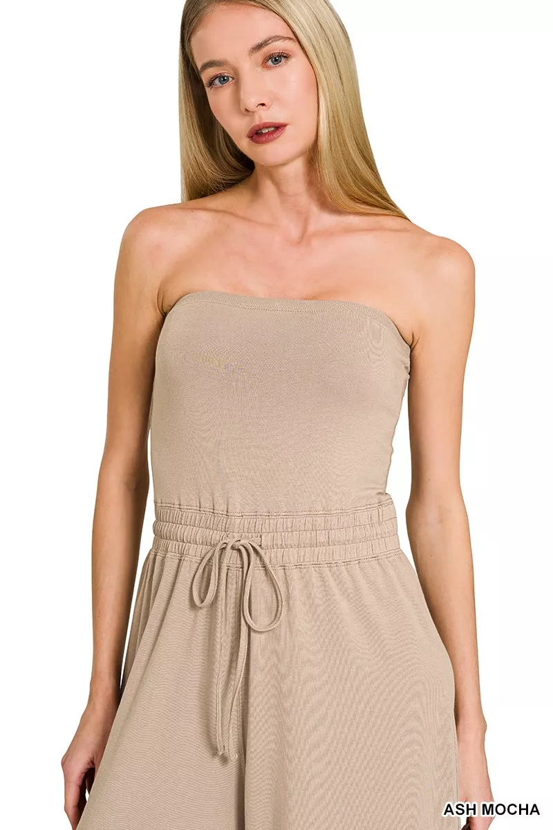 Zenana Tube Top Jumpsuit with Drawstring Waist