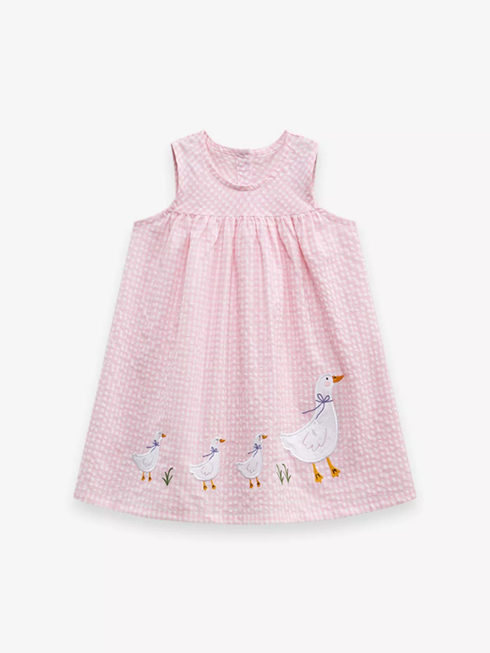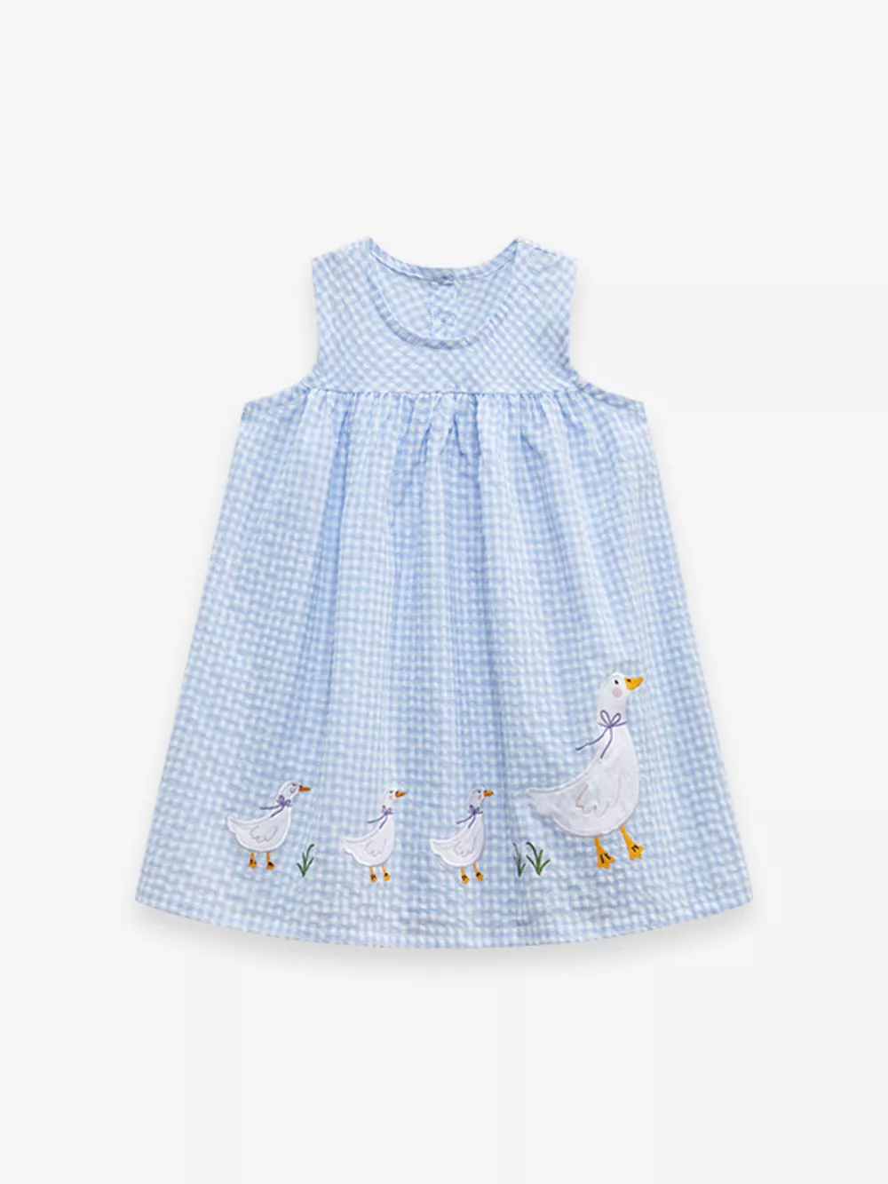 Children's Gingham Goose Embroidered Sleeveless Dress
