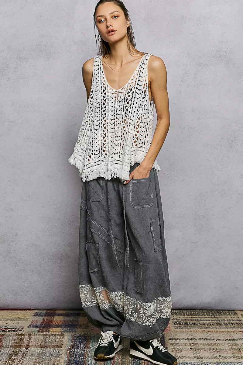 POL Crochet Fringe Hem Tank Top