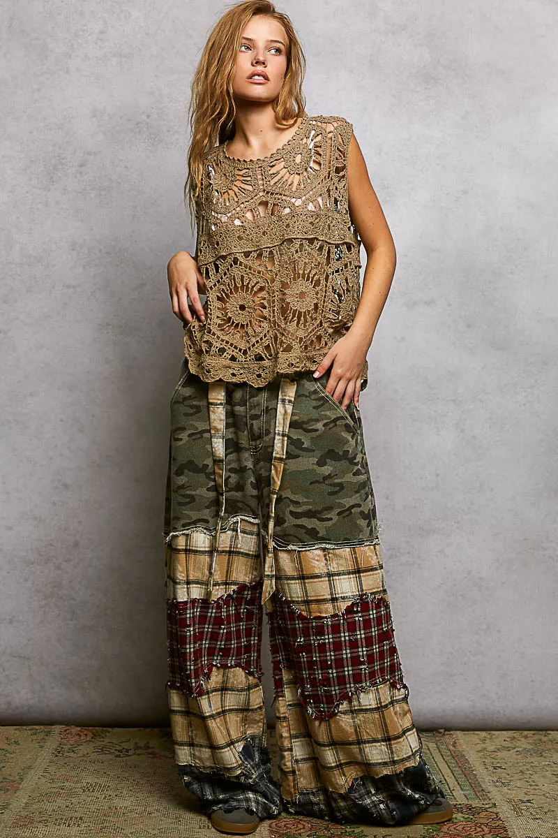 POL Openwork Round Neck Floral Crochet Tank