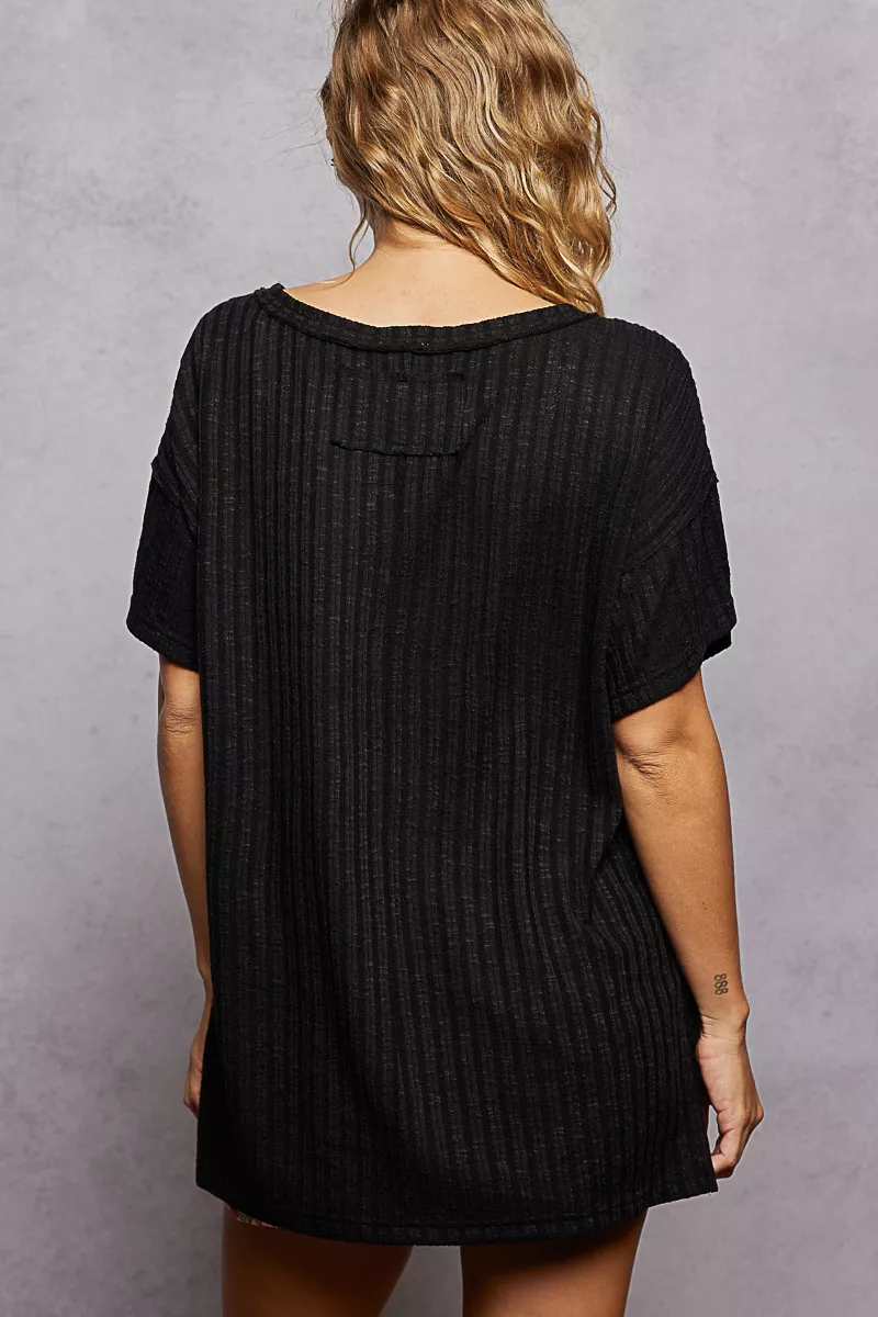 POL Ribbed Knit V-Neck Short Sleeve T-Shirt