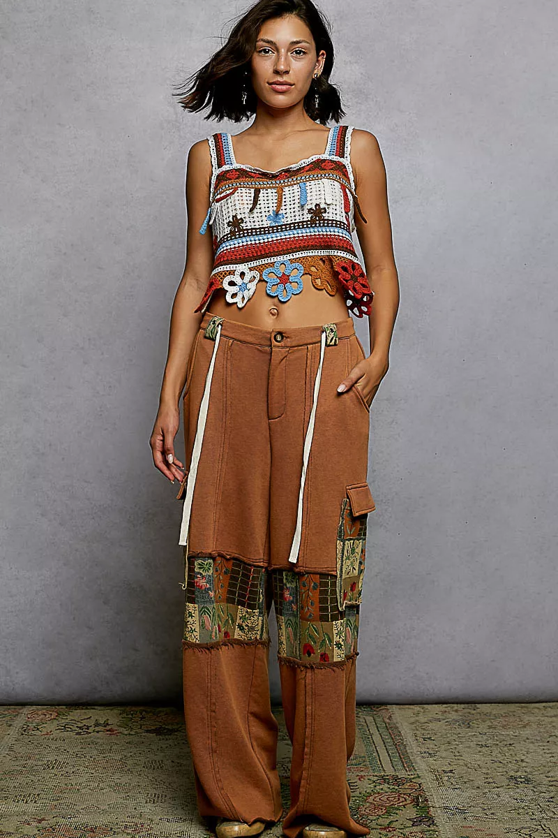 POL Cutout Flower Cropped Crochet Cami with with Dangle Detail