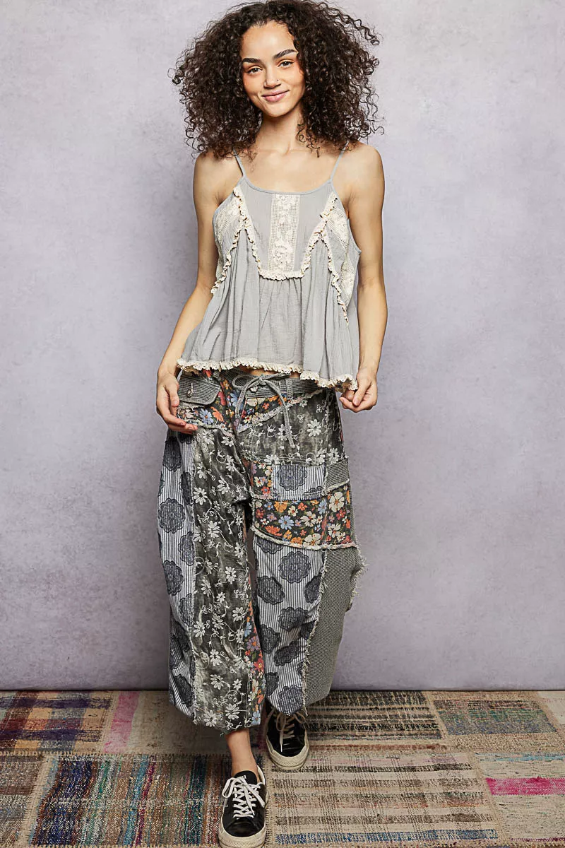 This top is crafted in a comfortable regular fit with a round neck and sleeveless design. The rayon gauze material gives it a lightweight and breathable feel. The trim detailing on the top point and shirring point adds a stylish touch. With vintage washing, this top has a unique and trendy look. The solid color makes it easy to pair with different bottoms for versatile styling options.