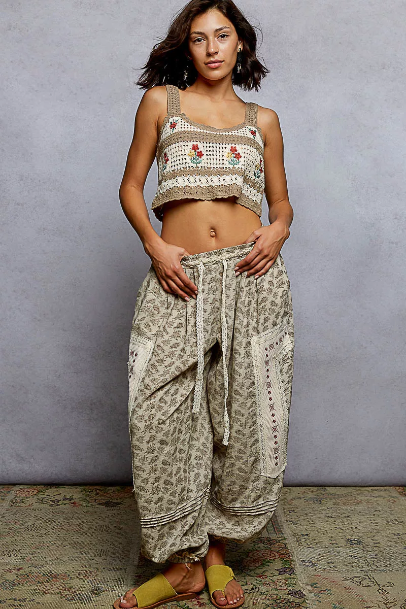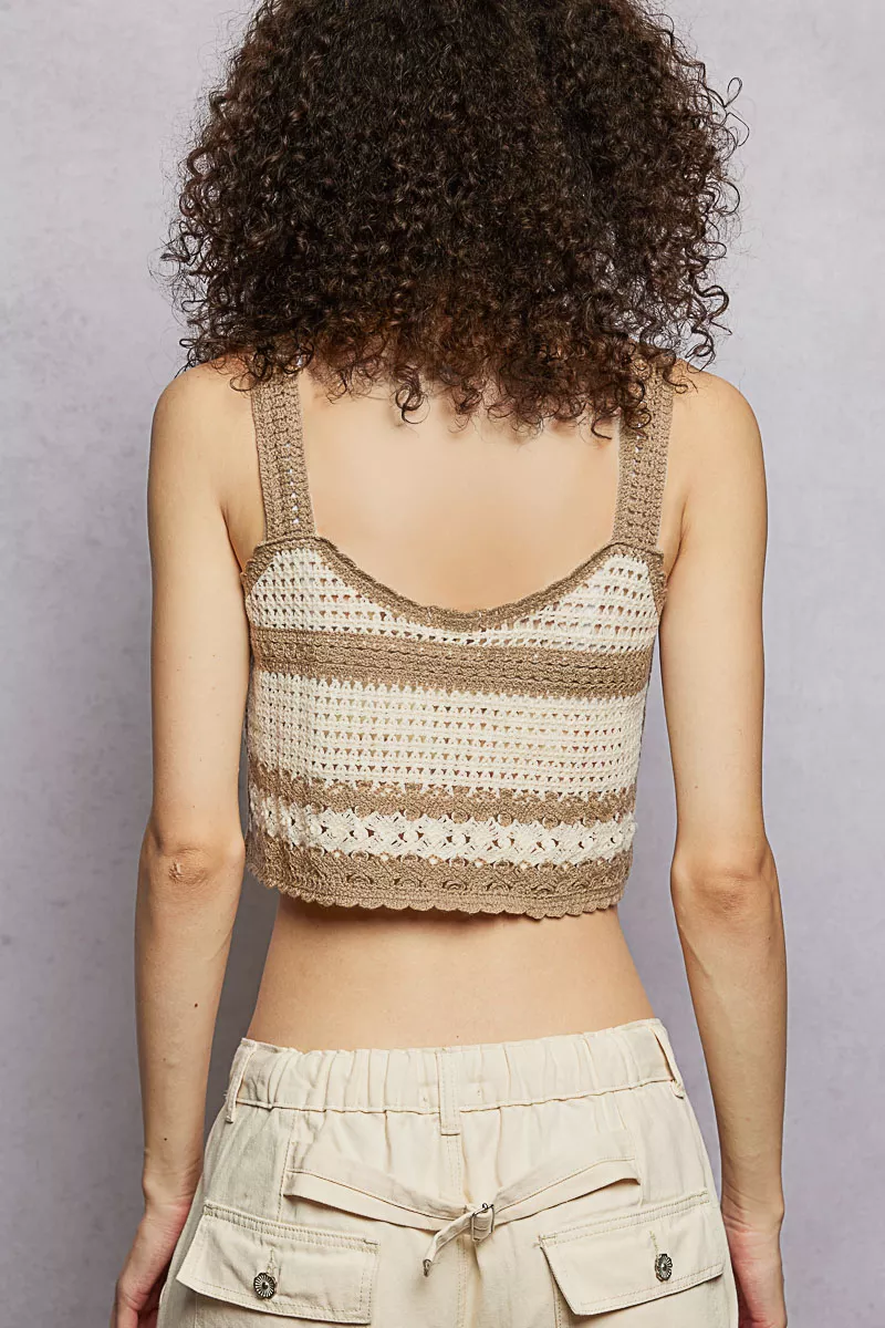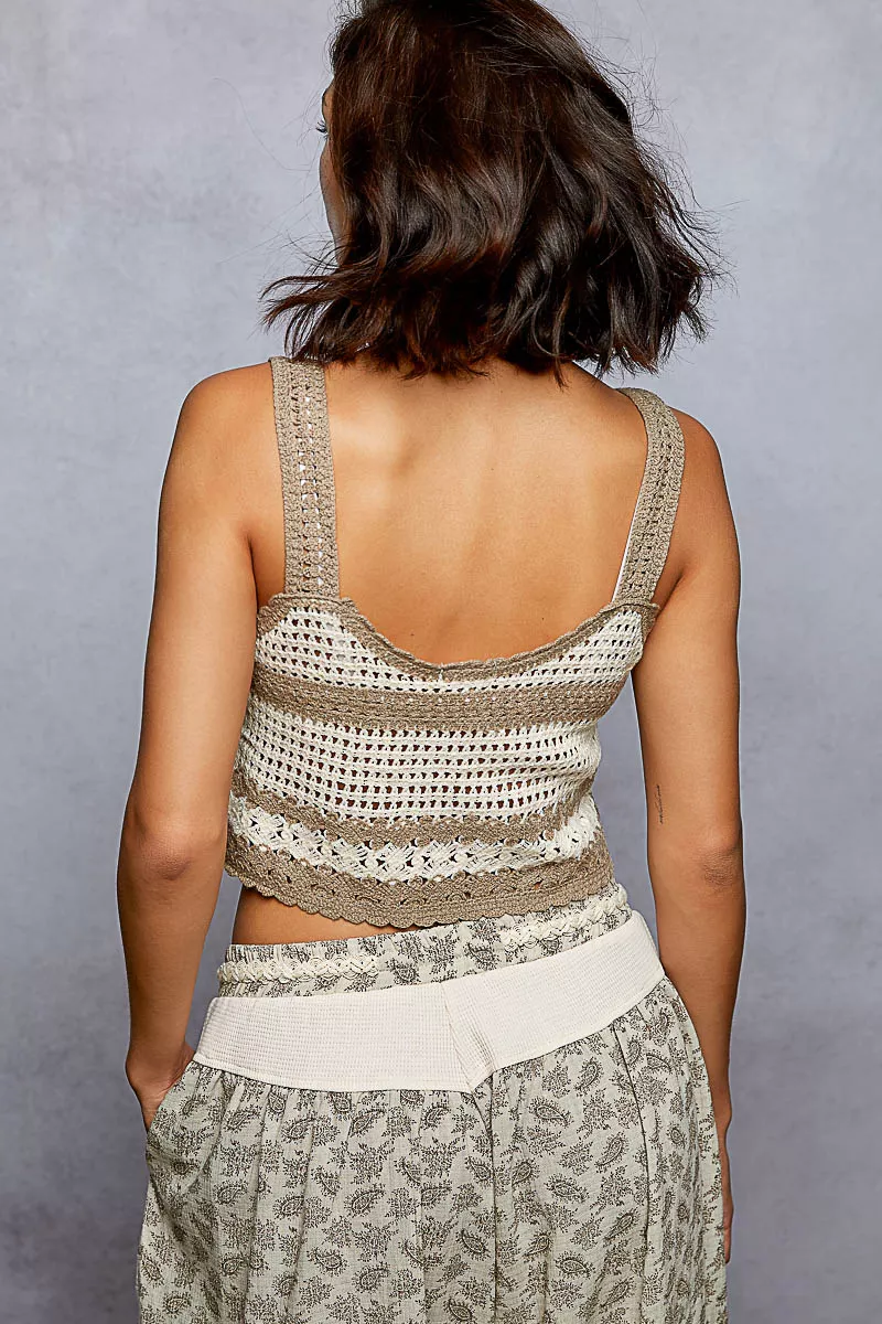 POL Floral Embroidered Cropped Crochet Cami with Scalloped Hem