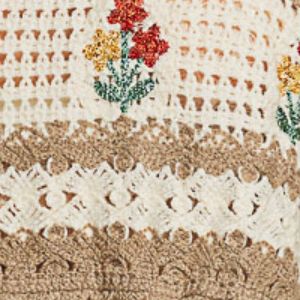 This scoop neck fitted cropped sleeveless top in crochet is a standout piece in any wardrobe. The see-through weave and color-blocked band point create a unique and eye-catching look. The floral embroidery adds a touch of femininity and charm to the design. The scalloped bottom opening detail adds a delicate and elegant finish to the top. With its solid color and normal washing care instructions, this top is a versatile and stylish addition to your collection.