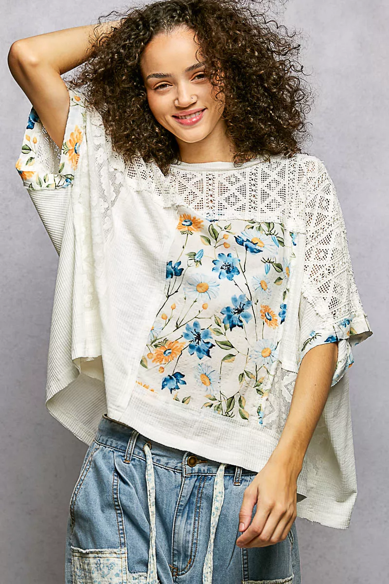 The round neck, oversized fit top in rib features a unique design with raw edge detailing and a pointed floral pattern. This top offers a relaxed and comfortable fit, perfect for a casual yet stylish look. The ribbed texture adds depth and interest to the piece, while the raw edge detail gives it a touch of edginess. The pointed floral pattern creates a feminine and eye-catching element to the top's design. Combining fashion-forward details with a comfortable silhouette, this top is a versatile and on-trend addition to your wardrobe.